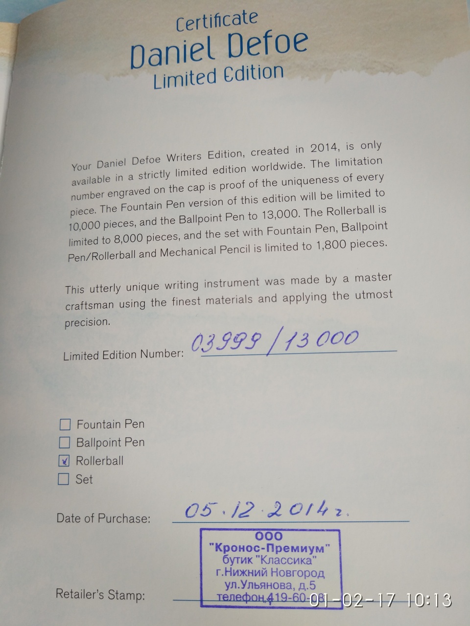 Роллер Montblanc лимитка Daniel Defoe - Часовой форум Watch.ru