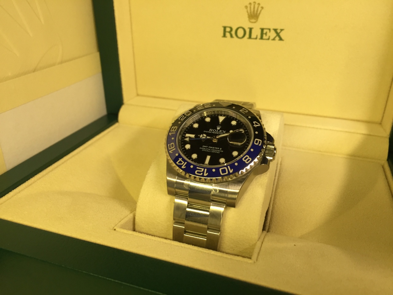 КОРПУС Oyster, 40 мм, сталь, КОНСТРУКЦИЯ OYSTER Цельный корпус, привинчиваемые крышка и заводная головка, ДИАМЕТР 40 мм, МАТЕРИАЛ Сталь 904L, БЕЗЕЛЬ Вращающийся в двух направлениях безель с градуированной 24-часовой шкалой. Двухцветный сине-черный керамический диск Cerachrom с гравированными цифрами и делениями, ЗАВОДНАЯ ГОЛОВКА Привинчиваемая, с системой тройной герметизации Triplock, СТЕКЛО Сапфировое, устойчивое к появлению царапин, циклопная линза (2,5x) в окошке индикации даты, ВОДОНЕПРОНИЦАЕМОСТЬ До 100 м, МЕХАНИЗМ Perpetual, автоматический подзавод, функция GMT, КАЛИБР 3186, производство Rolex, ФУНКЦИИ Центральные часовая, минутная и секундная стрелки. 24-часовая индикация времени. Второй часовой пояс с быстрой и независимой регулировкой часовой стрелки. Мгновенно устанавливаемая дата. Возможность остановки секундной стрелки для выставления точного времени, ТОЧНОСТЬ Сертификат COSC, ОСЦИЛЛЯТОР Синяя парамагнитная спираль Parachrom, ЗАВОД ЧАСОВ Автоматический подзавод в двух направлениях с помощью ротора Perpetual, БРАСЛЕТ Oyster, плоские трехрядные звенья, МАТЕРИАЛ БРАСЛЕТА Сталь 904L, ЗАСТЕЖКА Застежка безопасности Oysterlock с раскладывающейся пряжкой и удлиняющим до 5 мм звеном Easylink, ЦИФЕРБЛАТ Черный