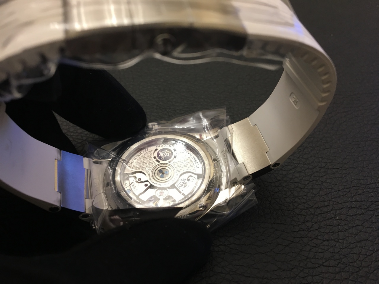 Компания Ulysse Nardin представила в 2016 году новую элегантную модель Diver Lady с новым обликом и новым обликом и новым мануфактурным механизмом. Изящный корпус Diver Lady (реф. 3203-190-3/10) выполнен из нержавеющей стали, размером 40 мм, только на этот раз он более герметичен, так как способен выдержать давлении води до 30 Бар. Дизайн часов был создан как вдохновение от морских простор, что идеально отображено на одноповоротном безеле с каучуковыми вставками белого цвета и мотивами морских волн, который украшен 1 бриллиантом. Эти же волны мы сможем увидеть на секундном счетчике в положении на 6 часов. Циферблат из белого перламутра с 8 бриллиантами круглой огранки вместо меток. По центру грациозно скользят часовая и минутная стрелки с люминесцентным покрытием. В положении на 6 часов отображается окошко с указателем даты. Часы оснащены часовым механизмом с автоподзаводом, калибр Caliber UN-320. Который обеспечивают запас хода до 48 часов. Повышена защищенность от воды, что делают их пригодными для ныряния под воду до 300 метров. Сапфировое стекло с антибликовым покрытием надежно защищает от царапин. Элегантный каучуковый ремешок белого цвета с двумя стальными вставками и раскладывающейся стальной застежкой.
