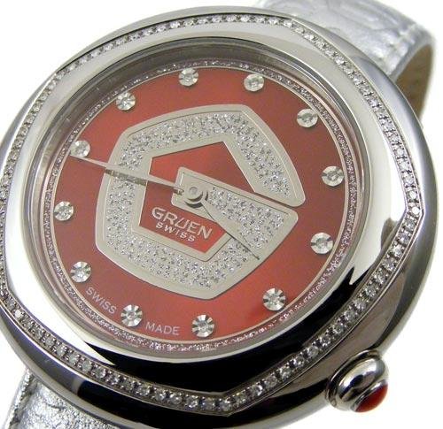 часы женские Gruen Diamond Red, 97 бриллиантов, 2 ремешка, новые в полном комплекте