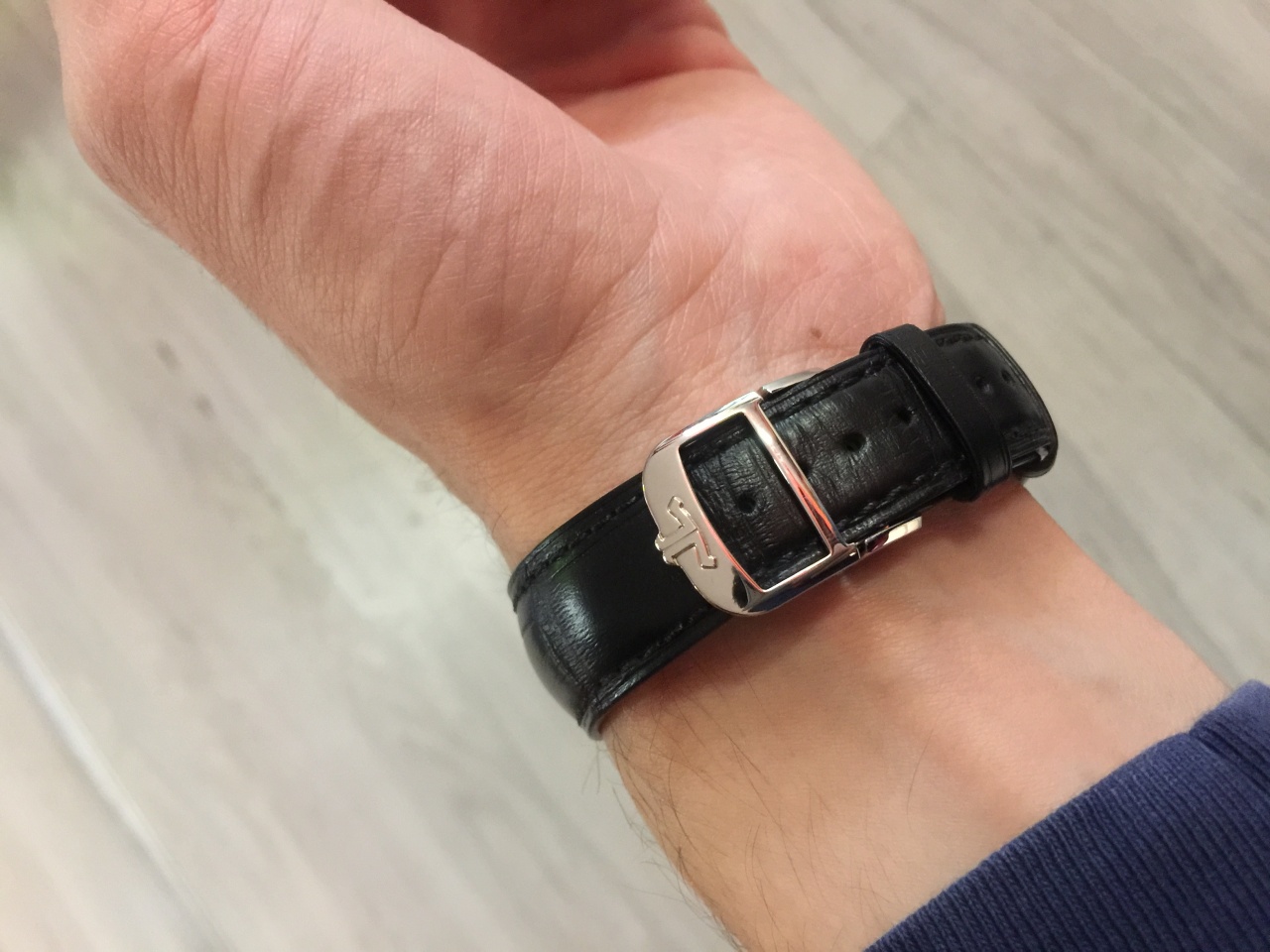 Это последняя модель 2017 года, пока нигде не видел их. Отличается она новым ротором из 18-каратного золота (в отличие от прошлой модели механизма 899, где на роторе было утяжеление из золота, но сам ротор был стальным), и обновленной застежкой. Застежка выглядит, на мой взгляд, лучше прошлой (та была совсем простая), но немного выступает на руке (постарался сфотографировать так, чтобы было видно) - думаю, со временем ремешок сядет по руке и это будет менее заметно.