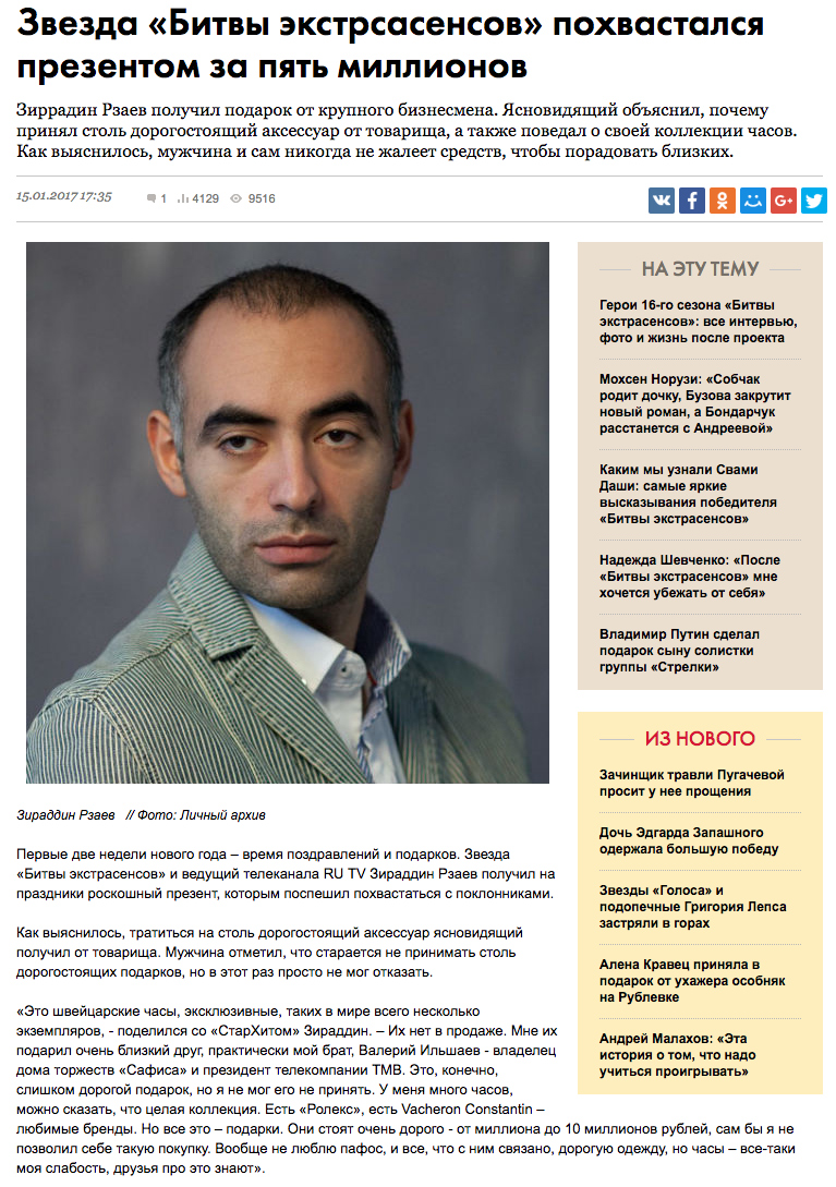 Экстрасенс Зиррадин Рзаев и Breguet за пять миллионов
