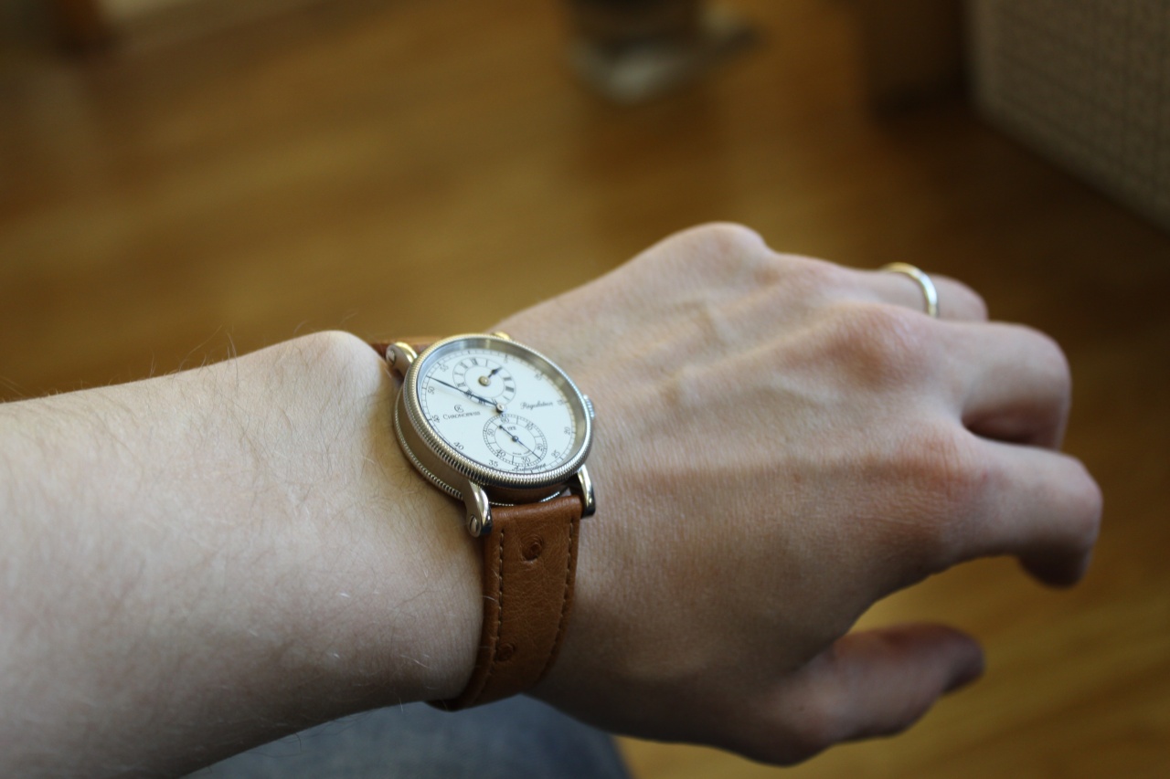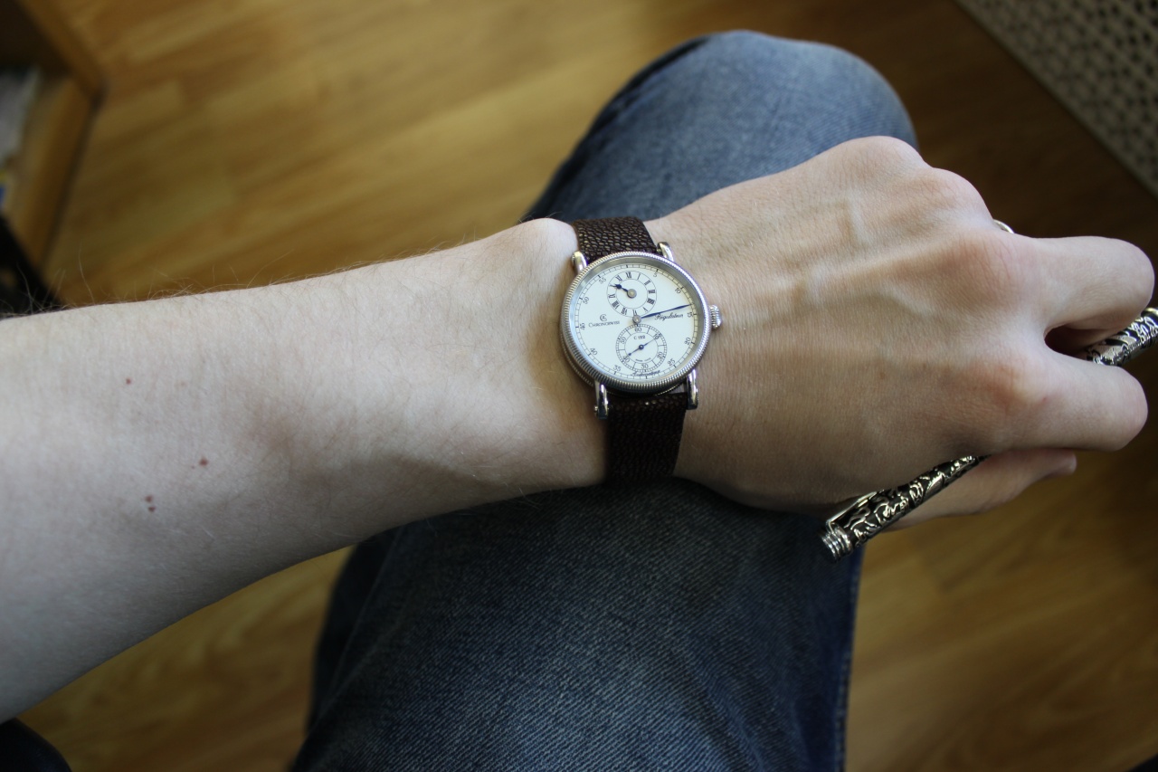 Часы практически не носились, очень красивые и интересные. Ставил три разных ремня и со всеми хорошо смотрится