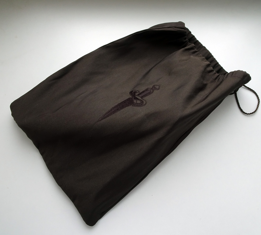 Пряжка в фирменном стиле марки, с логотипом бренда в виде кинжала.