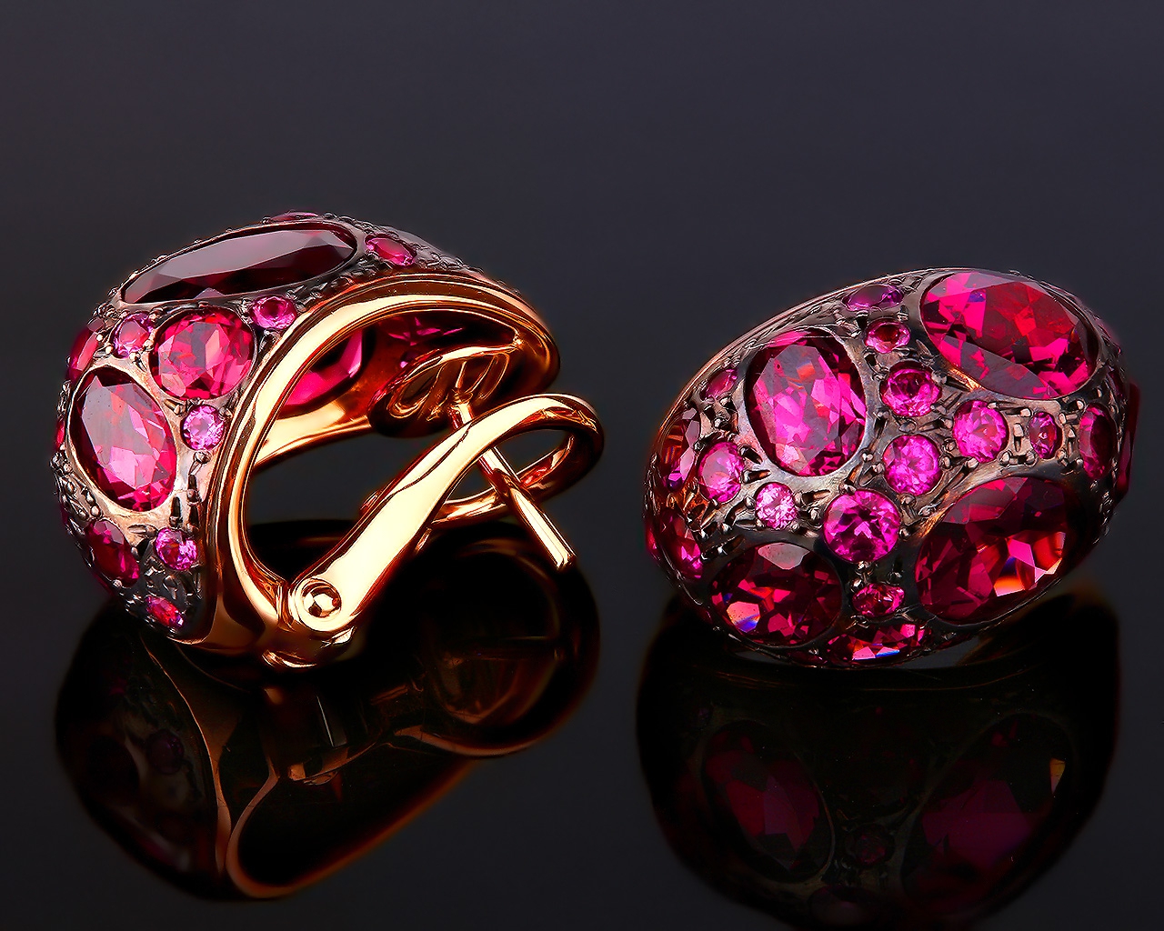 pomellato, золотые серьги с родолитами |