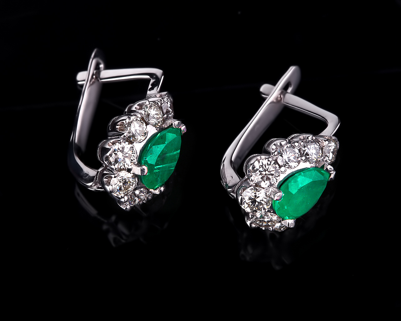 Серьги с бриллиантами 1.26ct и изумрудами 1.30ct