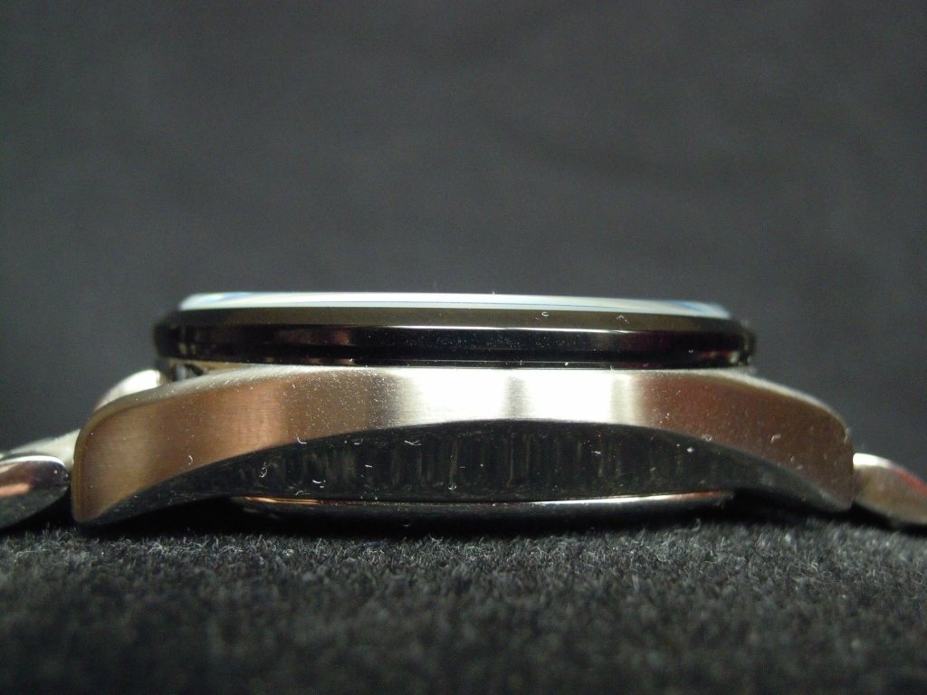 Теперь по самим часам. Безель и "голова грифа" напротив 2-х часов, видимо имеют керамическое покрытие. Стекло чуть меньше, чем на миллиметр возвышается над безелем.