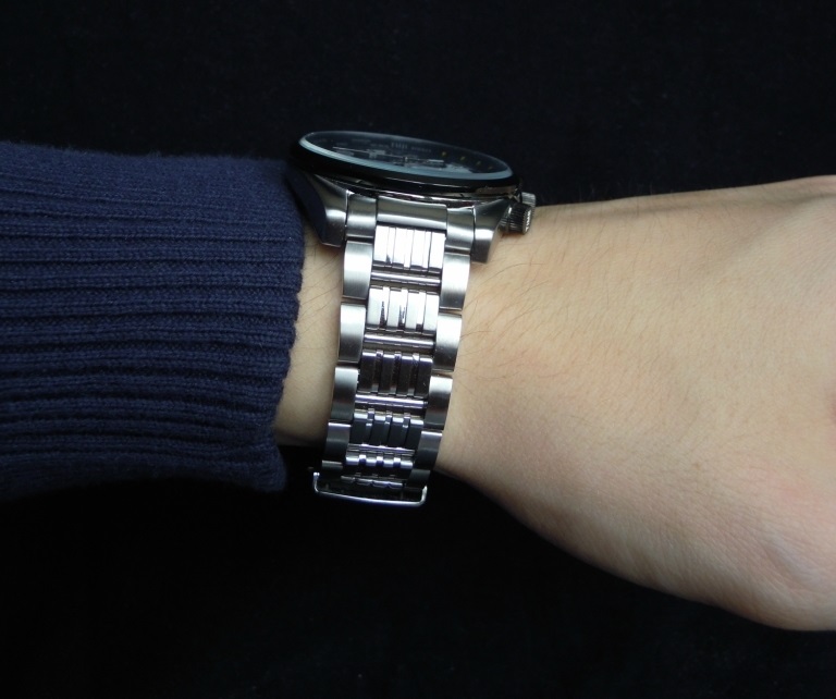 Браслет легкий, средняя часть звеньев, вроде как, пустотелая. Есть тонкая регулировка на 3 деления.