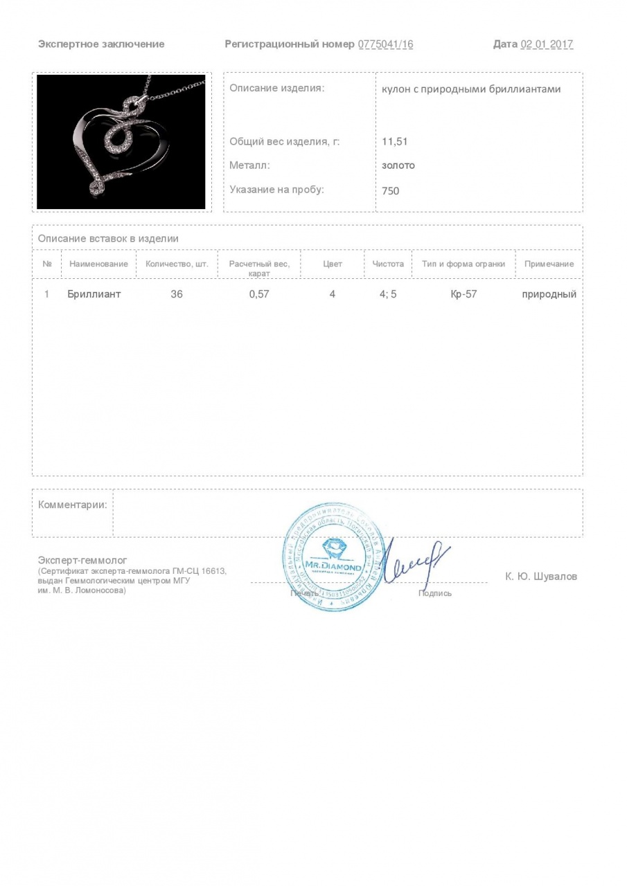 Представляем вашему вниманию итальянский золотой кулон сердце с бриллиантами 0.57ct.