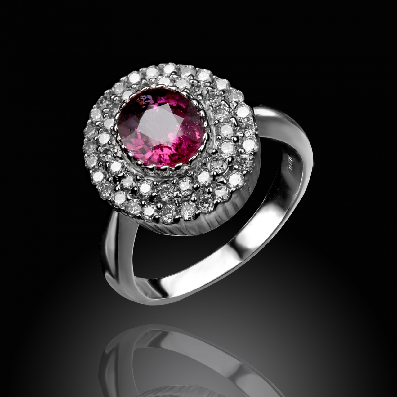 Кольцо из белого золота с турмалином 1,5 карат и бриллиантами 0,5 карат