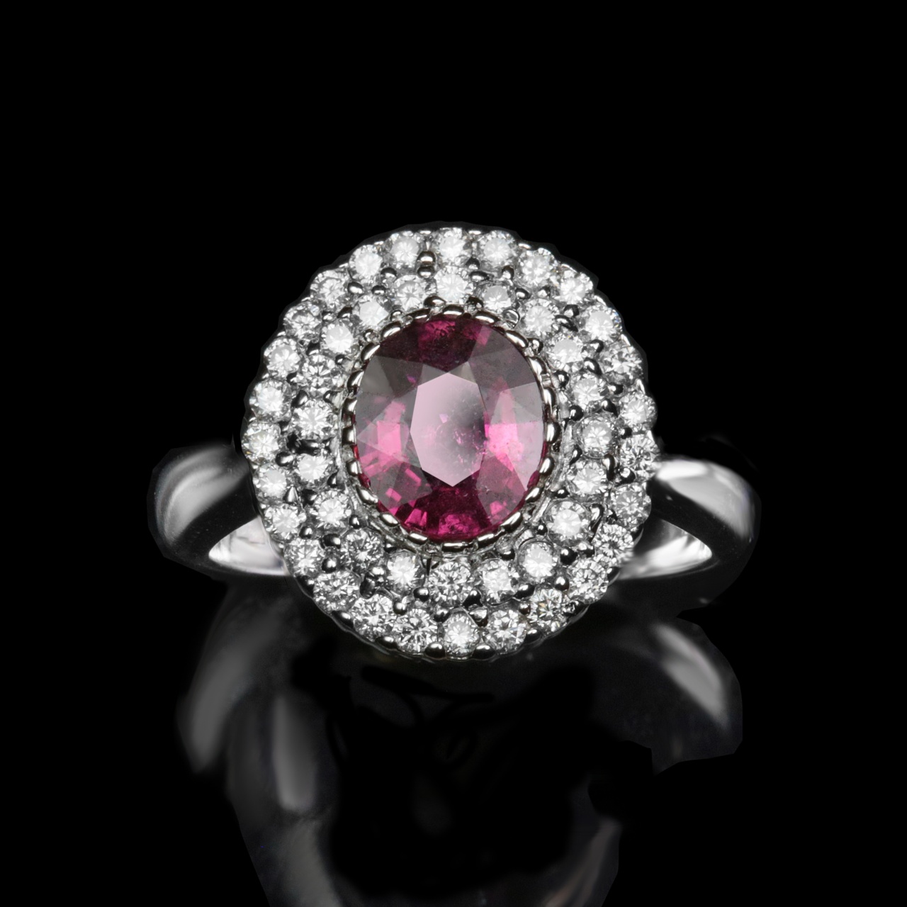 Кольцо из белого золота с турмалином 1,5 карат и бриллиантами 0,5 карат (сертификат GIA)