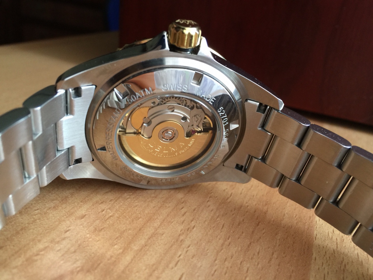 Часам 2,5 года, из которых они носились только полгода. Без проблем - не падали, не топились. Не ремонтировались. Один хозяин. Точность хода +3...4 сек сутки. На фото именно эти часы.