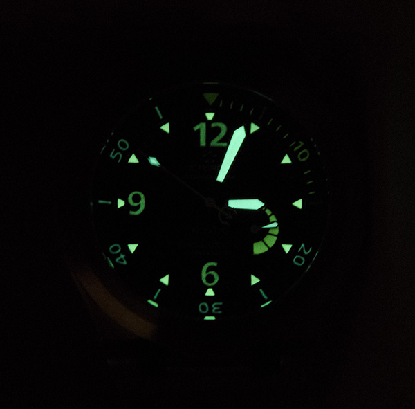 Функции: Часы, минуты, секунды, дата, индикатор запаса хода, дайверская шкала.