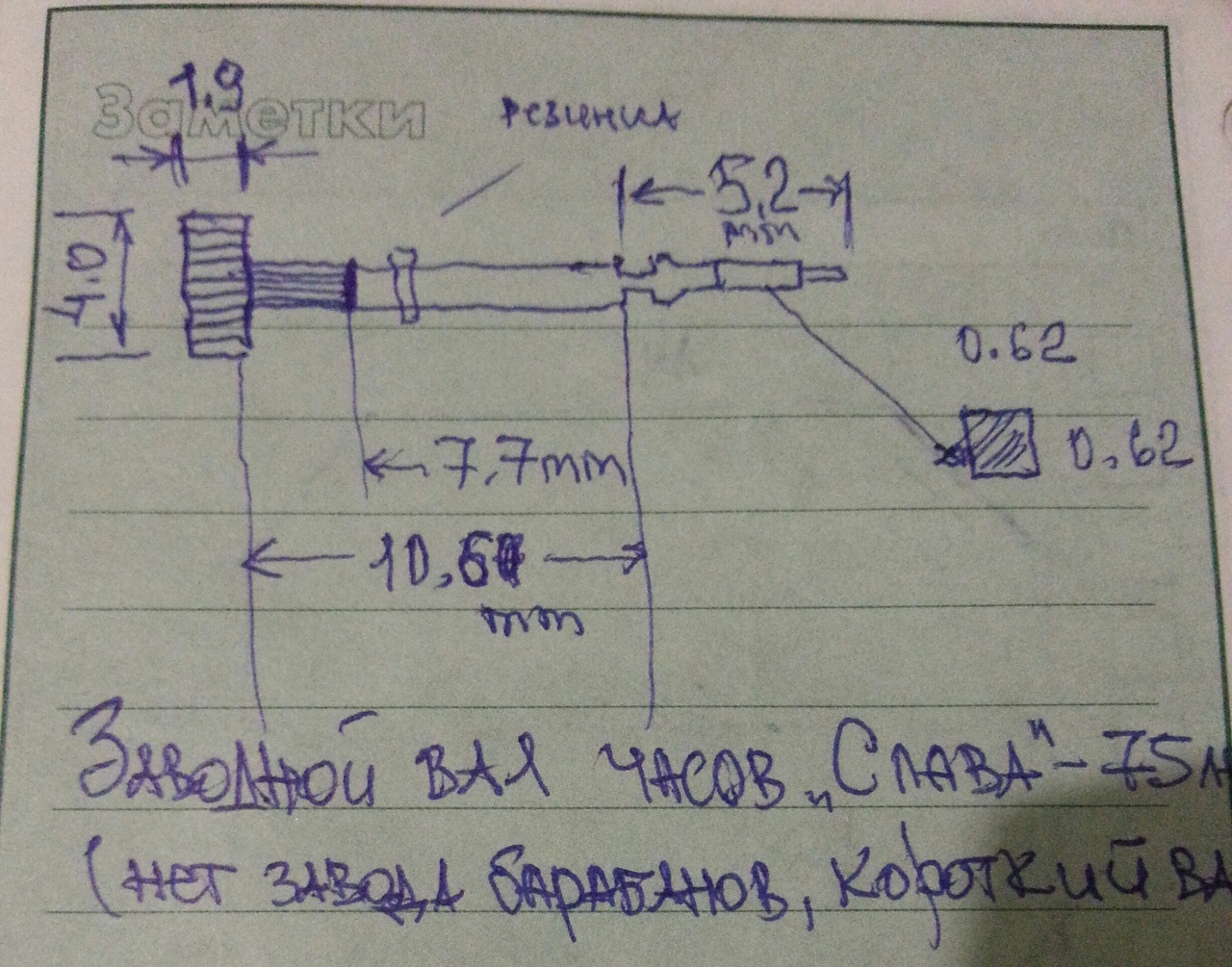 Столкнулся с проблемой длины заводного вала: в часах Слава псевдоамфибия,с хлопушкой, выпущенных к 75 летию завода, не хватает длины вала для завода пружины, головка вала упирается в футор, работает только перевод стрелок.Без корпуса все работает нормально, разбирал смотрел ремонтуар,снимал календарь,мост заводной,-пришел к выводу, что короткие либо вал(он с резинкой,наверное оригинальный), либо заводная головка короче на 1-1.5мм(муфта от самой шляпки), либо было колечко-шайба в месте соединения вала и головки(длина резьбы позволяет вставить колечко-шайбу),которое устраняет упор вала в футор(удлиняет общую длину вала).