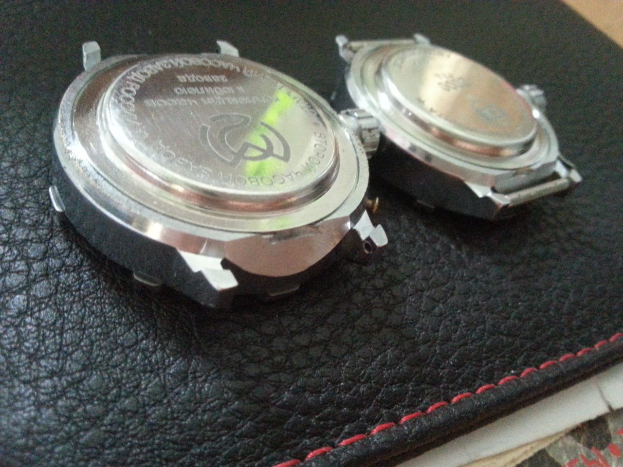 Подскажите,кто сталкивался с такой проблемой.На других похожих часах с головкой и валом все в порядке,но не могу их открыть,чтобы померить, видать хлопушка на резьбе,над проточкой в корпусе она не нависает,на ней следы зажима,нужна цанга.И похоже вторые не псевдоамфибия.Встречал ли кто в таких часах хлопушку на резьбе?На ней надпись повышенная водозащита.