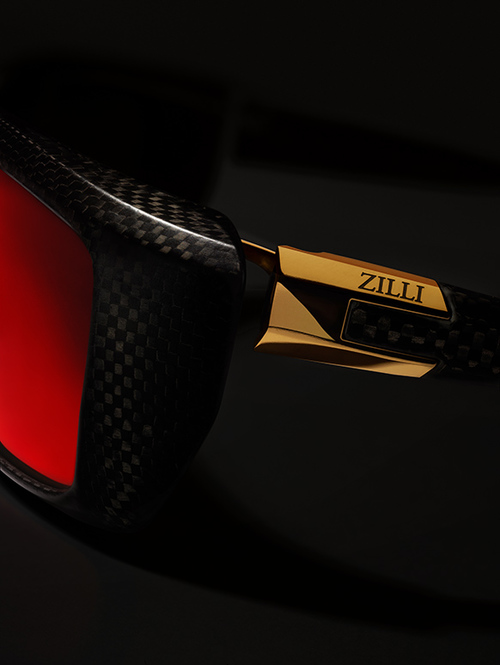 Декоративные элементы очков покрыты матированным желтым золотом с тесненным изображением логотипа марки ZILLI.