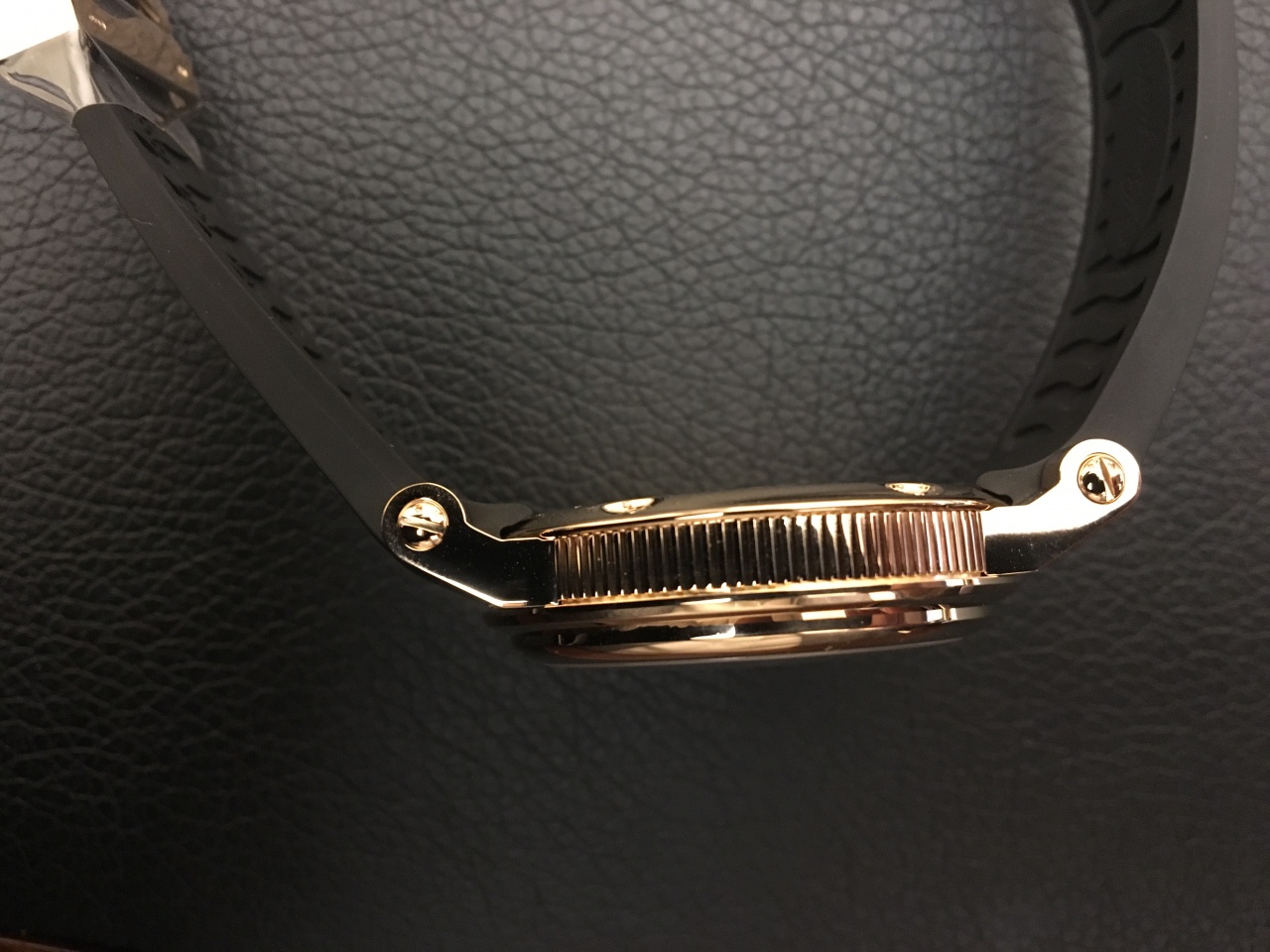 Циферблат из золота с черным родиевым покрытием и гильошированным вручную узором.