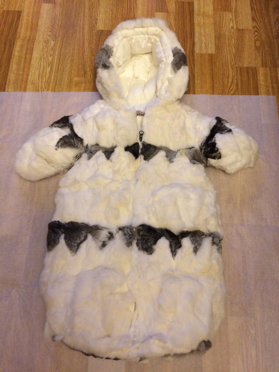 Конверт б/у один сезон (после одного ребенка),внешне-состояние отличное,на внутренней подкладке имеются 2 пятнышка (с обоих сторон от молнии)-последние 2 фото!Пятна убираются химчисткой.В остальном состояние отличное!