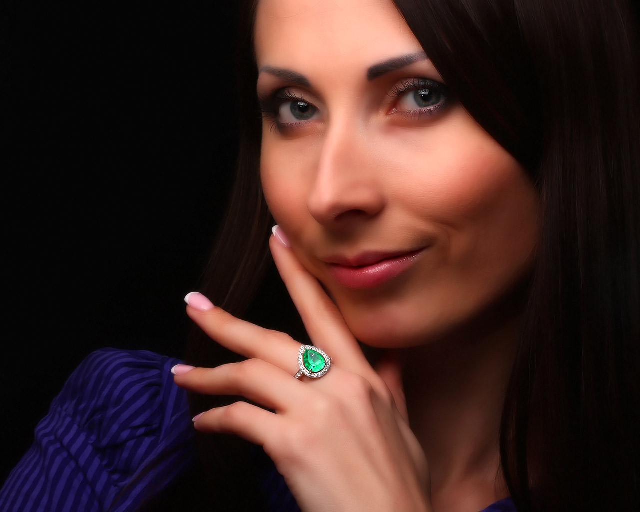 золотое кольцо с бриллиантами, золотое кольцо с изумрудом, уральский изумруд |