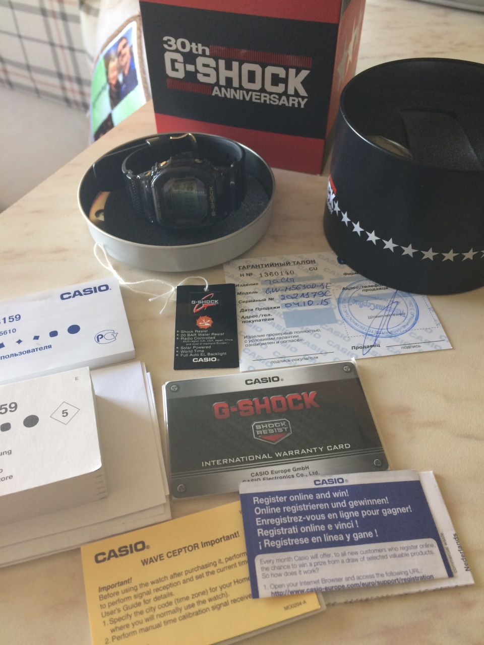 Лимитированная модель в черном корпусе, выпущенная на 30-летие бренда G-SHOCK. Юбилейная упаковка, золотые кнопки, застежка и задняя крышка, карбоновая текстура.
