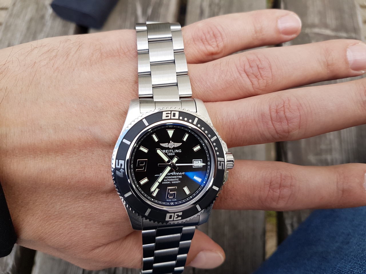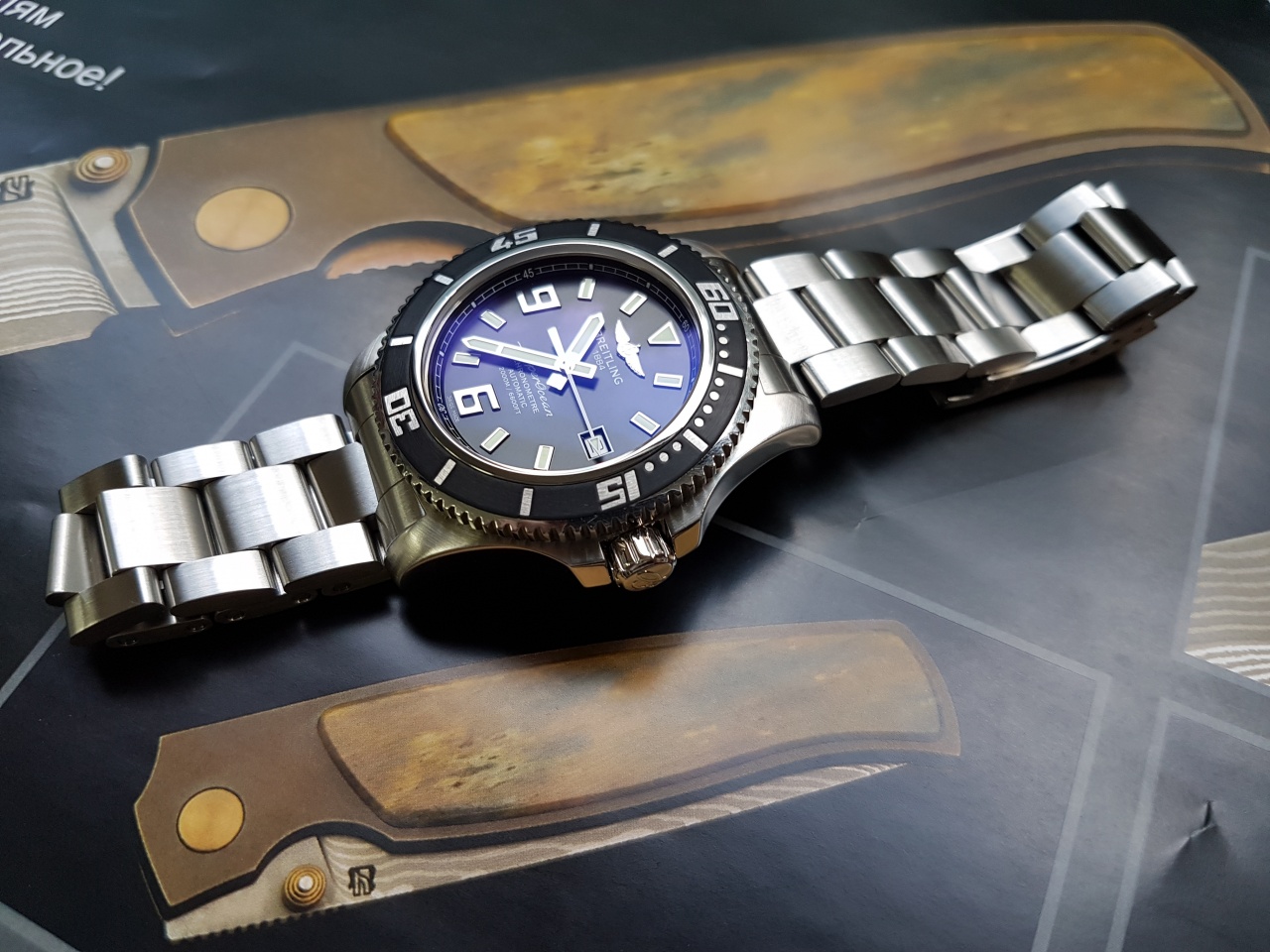 Продаются замечательные дайверы BREITLING SUPEROCEAN 44. Часы в идеальном состоянии, была сделана полировка часов и браслета в официальном сервисе. Полный комплект со всеми коробками, документами и гарантийной картой.