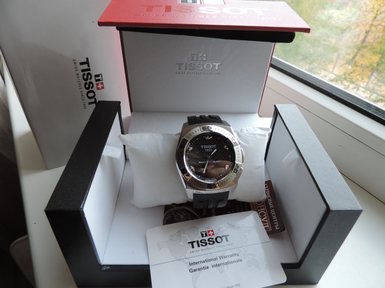 Продаю часы Tissot,куплены в прошлом году,надевали раз 20 от силы,состояние близкое к идеальному.Tissot Racing Touch T002.520.17.201.01 - мужские кварцевые часы. Корпус этих часов крупного размера (43 мм.) выполнен из нержавеющей стали, сапфировое стекло, полимерный ремешок чёрного цвета, чёрный циферблат из карбона. Водоустойчивость: 100 метров. Дополнительные функции и особенности: дата, день недели, будильник, хронограф, двойное время, компас, вечный календарь, таймер приливов. Цена 21 т.р,торг,пересылка.