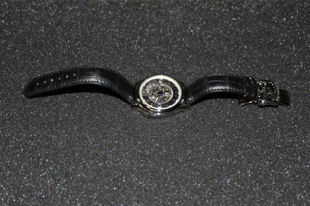 With Complications date and small seconds, the timepiece Chopard LUC Tech Twist is the most fascinating with its very original silver dial. The stainless steel end of the bezel, case and horns brings a beautiful light to all. The black leather strap with tonal stitching, creates an elegant contrast. This beautiful automatic model offers a wide diameter of 41 mm, more readable. Limited edition of 250 pieces.