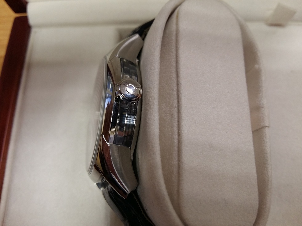 Отличительной особенностью этой модели являются вставки из сапфирового стекла в боковых частях корпуса, что подчеркивает красоту механизма этих часов.