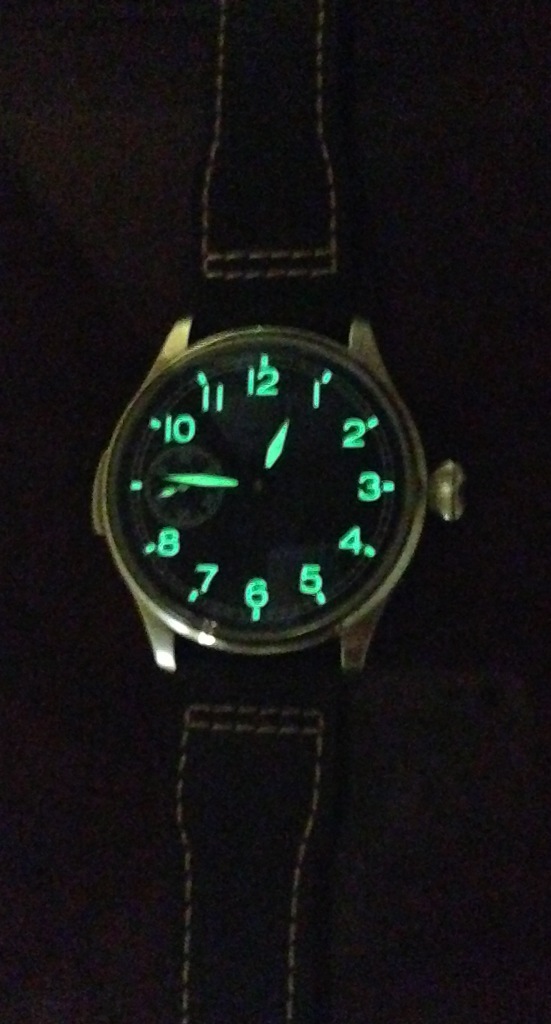 Яркие зеленые индексы, ручной завод, отличный точный ход, 44мм диаметр, яркий зеленый люминофор.
