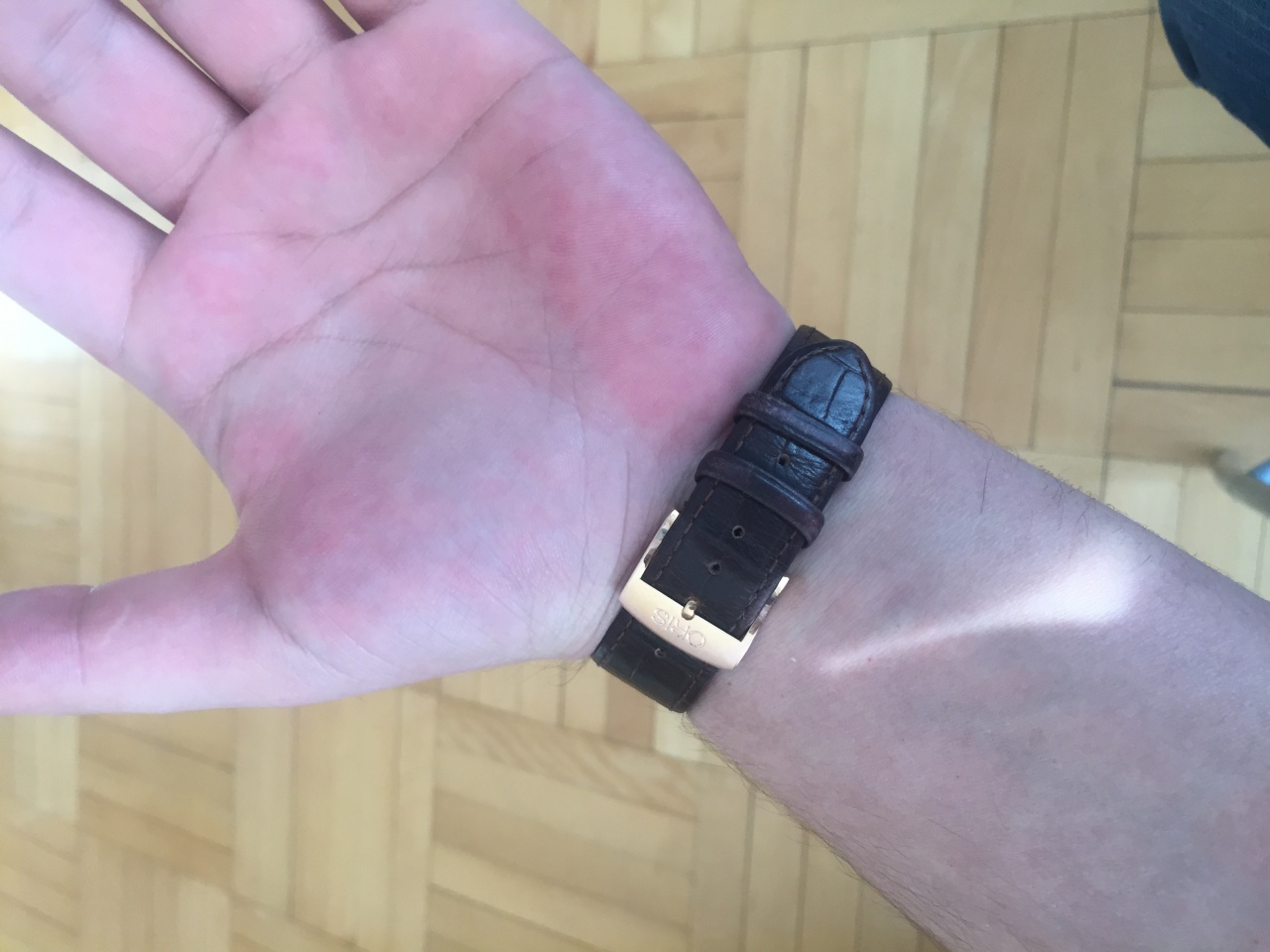 Часы в хорошем состоянии, розовое золото 750 пробы ремешок заказан, так что через дня три-четыре будет поставлен новый ремень и вполне возможно отполирую.