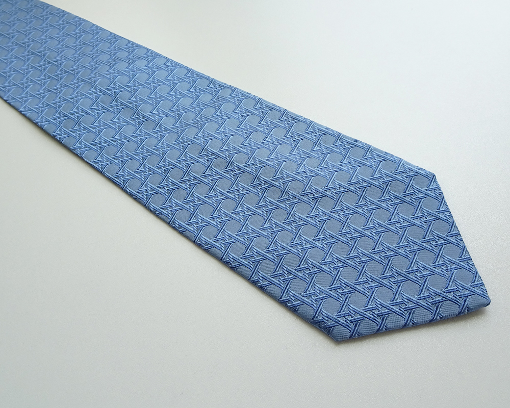 Цвет - светло-синий с фирменным узором. Шелк высочайшего качества, галстук уровня Hermes.
