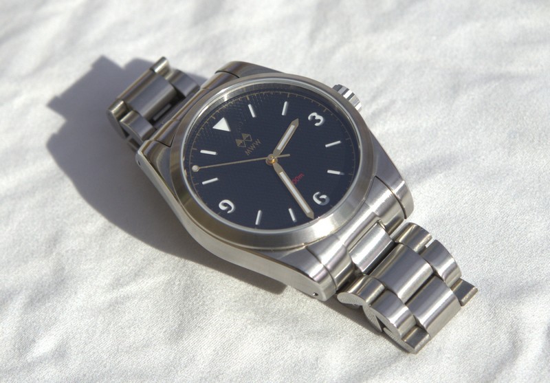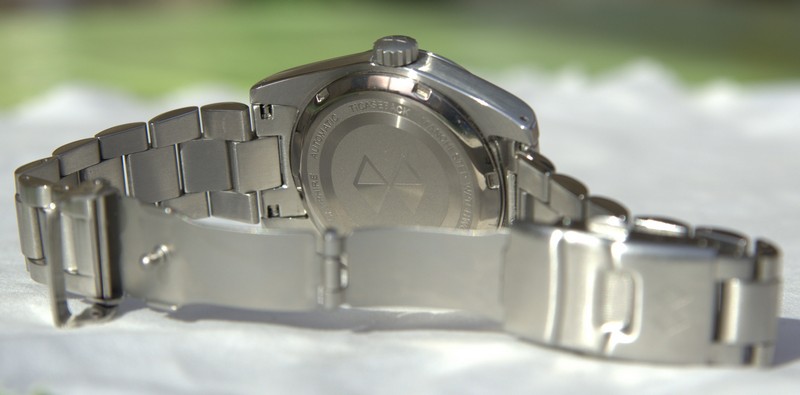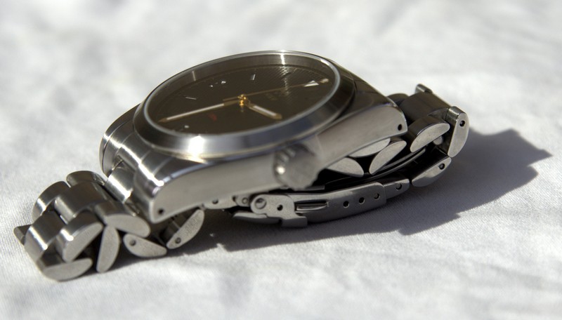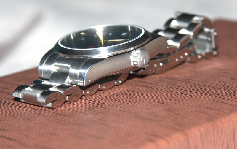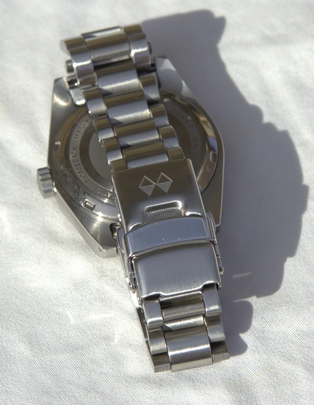 Вообще, забавно почитать всю историю этой модели на Watchuseek. Когда первый образец китайцы прислали совершенно не такой, какой был по дизайну в техзадании. Потом с корпусом исправились и даже улучшили его немного. Но зато их подвёл субподрядчик с браслетами. Первый раз прислали не ту модель браслета. А второй раз, уже когда первая партия приехала в Штаты, Даг обнаружил, что вместо 20мм-18мм, браслеты стоят 20мм-16мм. Хотел было потребовать заменить, но на форуме большинством голосов его убедили, что и так очень неплохо смотрится. Должен сказать, что да - непривычно, но неожиданно никаких негативных эмоций не вызывает. Что в моём случае удивительно - если бы это был ремешок с таким сужением, я бы не смог спокойно его носить.