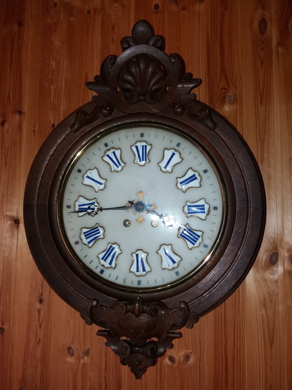 Часы доехали нормально, но вес посылки в 12,5 кг для шайбы немного смутил, подумал что г-н Колб обмотал часы в мокрые телогрейки, но когда достал и увидел размер и толщину платен, то все стало понятно. Тип механизма 61, а анкерная скоба стоит под углом, поэтому ход не как у обычных часов, где анкерная скоба как коромысло и ход ровный тик-так, у этих часов несколько иной звук хода.