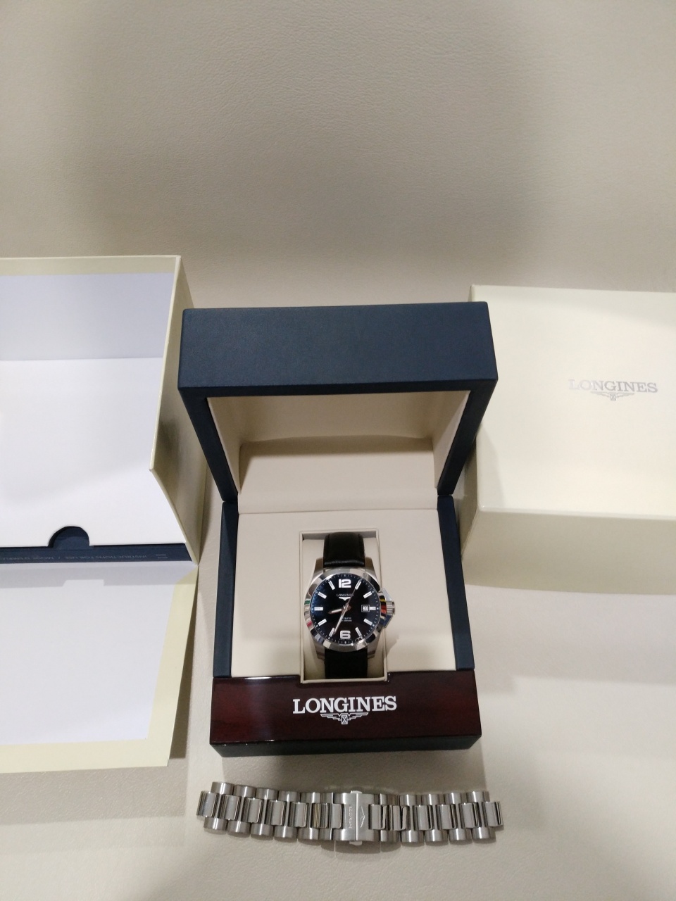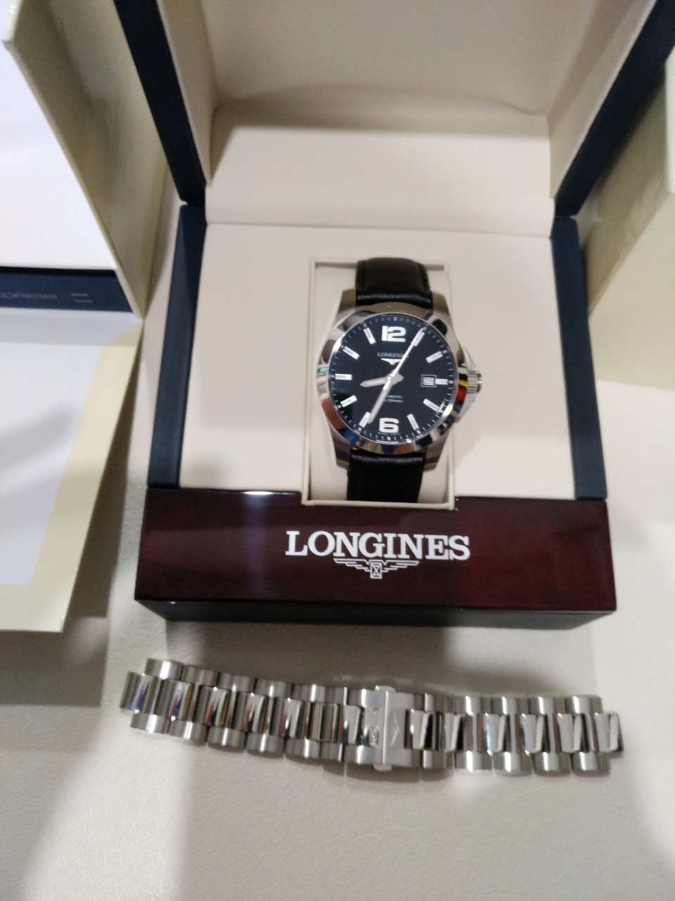 Продам механику Longines Conquest L3.677.4.58.6, часы в Волгограде. Носил редко, но так как корпус часов по большей части полированный металл - следы эксплуатации на корпусе имеются, стекло чистое - без царапин. Часы не полировались. Покупал в 2015 у официалов в Волгограде, коробка и все документы имеются. Сейчас часы на неоригинальном простеньком ремешке, в комплекте оригинальный новый браслет (с ним часы не носил, браслет абсолютно новый). Цена 35 000 руб.
