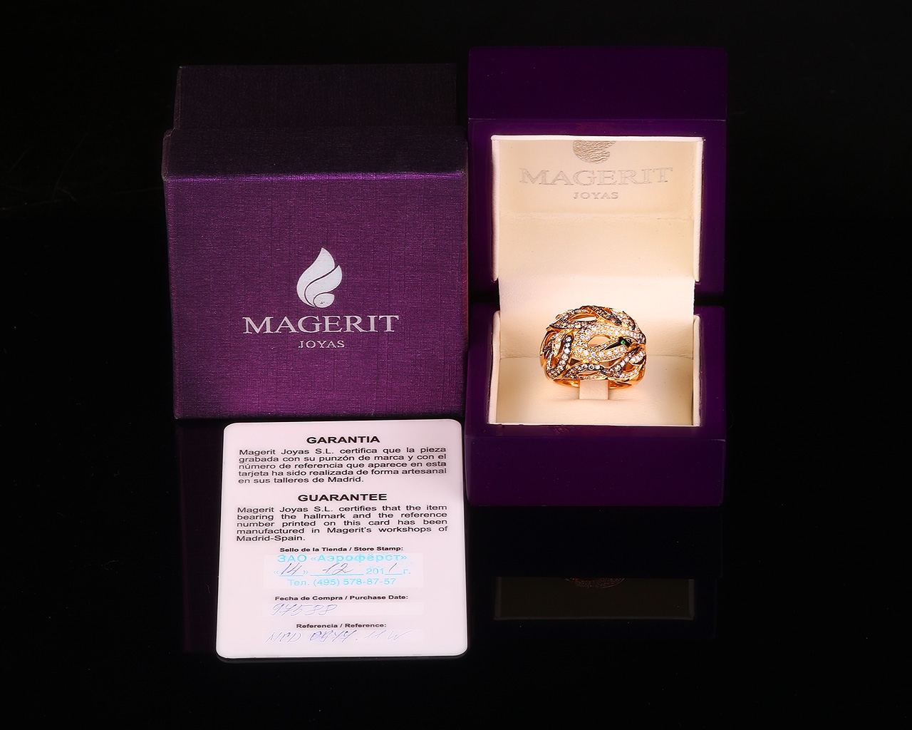 Представляем вашему вниманию роскошное золотое кольцо с бриллиантами 1.82ct и изумрудом 0.004ct от всемирно известного бренда Magerit из коллекции Elegance.