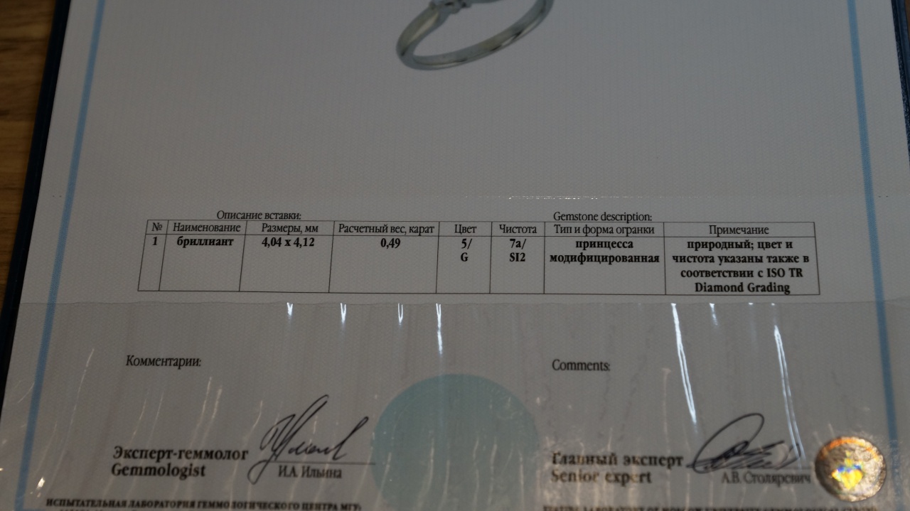 Сертификат МГУ прилагается (уточню, что лаборатория МГУ имеет тенденцию к сильному занижению характеристик, поэтому при оценке сторонним экспертом-геммологом характеристики камней с большой долей вероятности окажутся лучше/выше на 1-2 ступени).