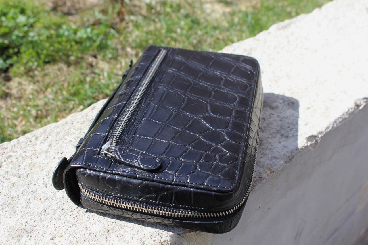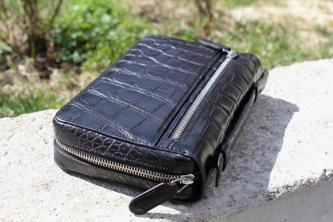 Клатч изготовлен из 100% кожи нильского крокодила высочайшего качества выделки с матовой поверхностью, из цельного куска с живота рептилии.