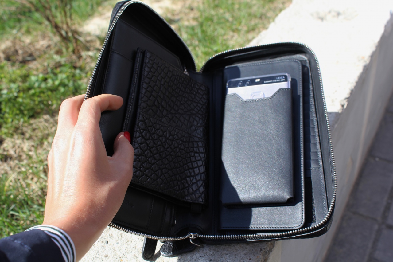 С внешней стороны имеется отделение на молнии и дополнительный карман для паспорта, авиабилета, небольших документов или смартфона.