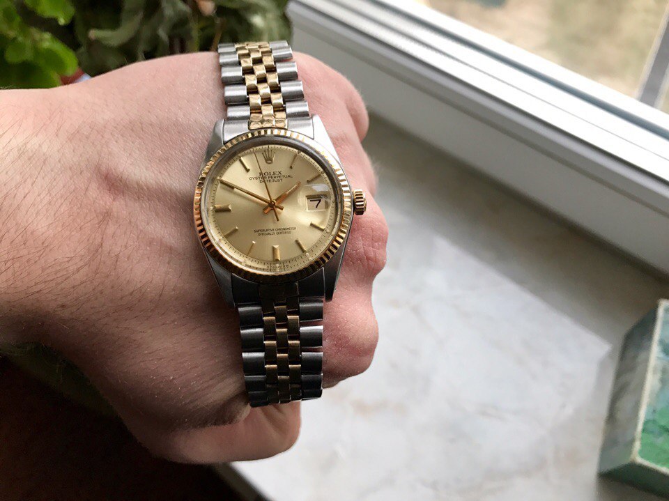Продаю легенду! Ролекс. Тут и слов не нужно. Неувядающая классика, эталон стиля и олицетворение шика и роскоши. Если большинство часов теряют актуальность с годами, Rolex - никогда! Без преувеличения, ВЕЧНЫЕ часы. Корпус и браслет выполнены в сочетании стали и золота 750 пробы. Браслет полный, на любую руку. Состояние часов отличное, механизм обслужен. Механика с автоподзаводом, сверхточный сертифицированный хронометр, калибр 1570, запас хода 48 часов, водозащита 100м. Размеры корпуса 36 x 11 мм. Комплект: часы и коробка.