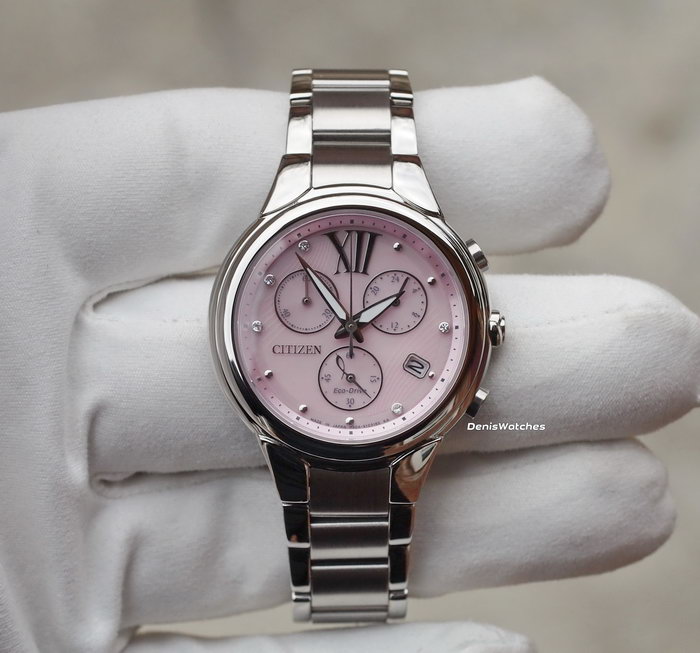 Элегантный женский хронограф c нежным светло-розовым циферблатом и кристаллами Swarovski на метках!
