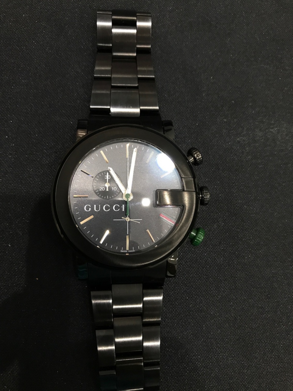 Продам Gucci Men’s 101M G-Chronograph Black Stainless Steel Watch-YA101331, идеальное состояние, одевались считаное количество раз, как новенькие, были получены в подарок - не ношу, были куплены в ЦУМе за 118900 руб., очень интересная модель: сапфировое стекло в форме буквы G, отличный швейцарский кварцевый хронограф на базе ETA, функция GMT перевода часового пояса, luxury сталь черного матового цвета, очень эффектные и необычные.