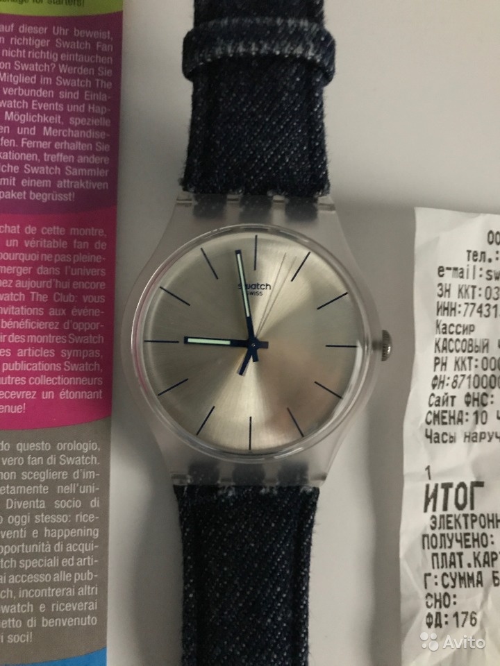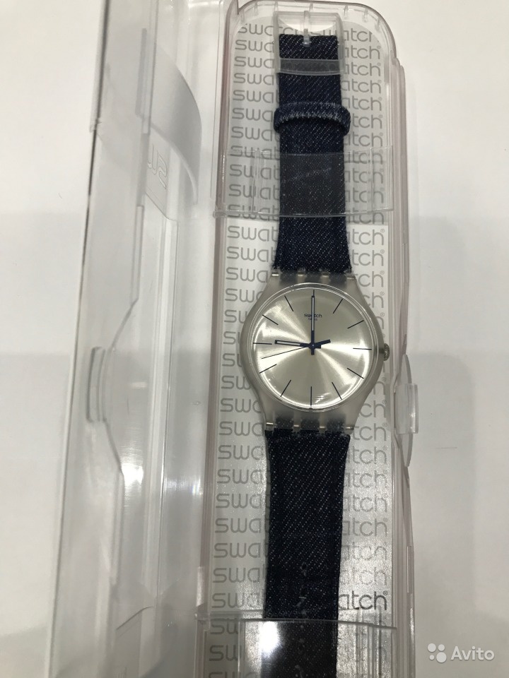 При покупке до выходных в подарок Swatch новая модель на джинсовом ремешке,, одевал от силы раз 7, идеальнейшее состояние, полный комплект коробка документы чек гарантия 2 года, стильные и легкие, джинсовый ремешок - тренд сезона!!!