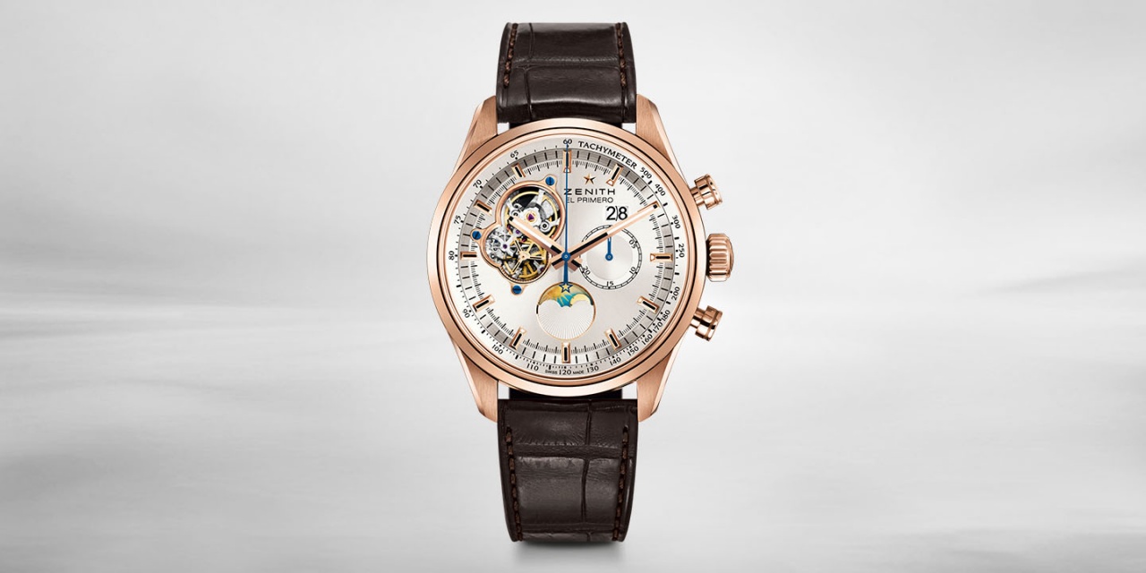 Для индикации движения небесных светил с помощью оригинального индикатора в положении «6 часов» и большой даты в положении «2 часа» Мануфактура Zenith изготовила циферблат с великолепной отделкой. Центральная часть циферблата (посеребренного или черного в зависимости от версии) украшена узором в виде солнечных лучей, зона минутной шкалы и счетчика в положении «3 часа» – круговым сатинированием, а нижняя часть индикатора движения Солнца и Луны в положении «6 часов» – гильошированным узором в виде солнечных лучей. Специальное окошко над «сердцем» механизма, ставшее визитной карточкой Мануфактуры Zenith, открывает взору баланс с высокой частотой колебания и позволяет насладиться филигранной отделкой калибра.