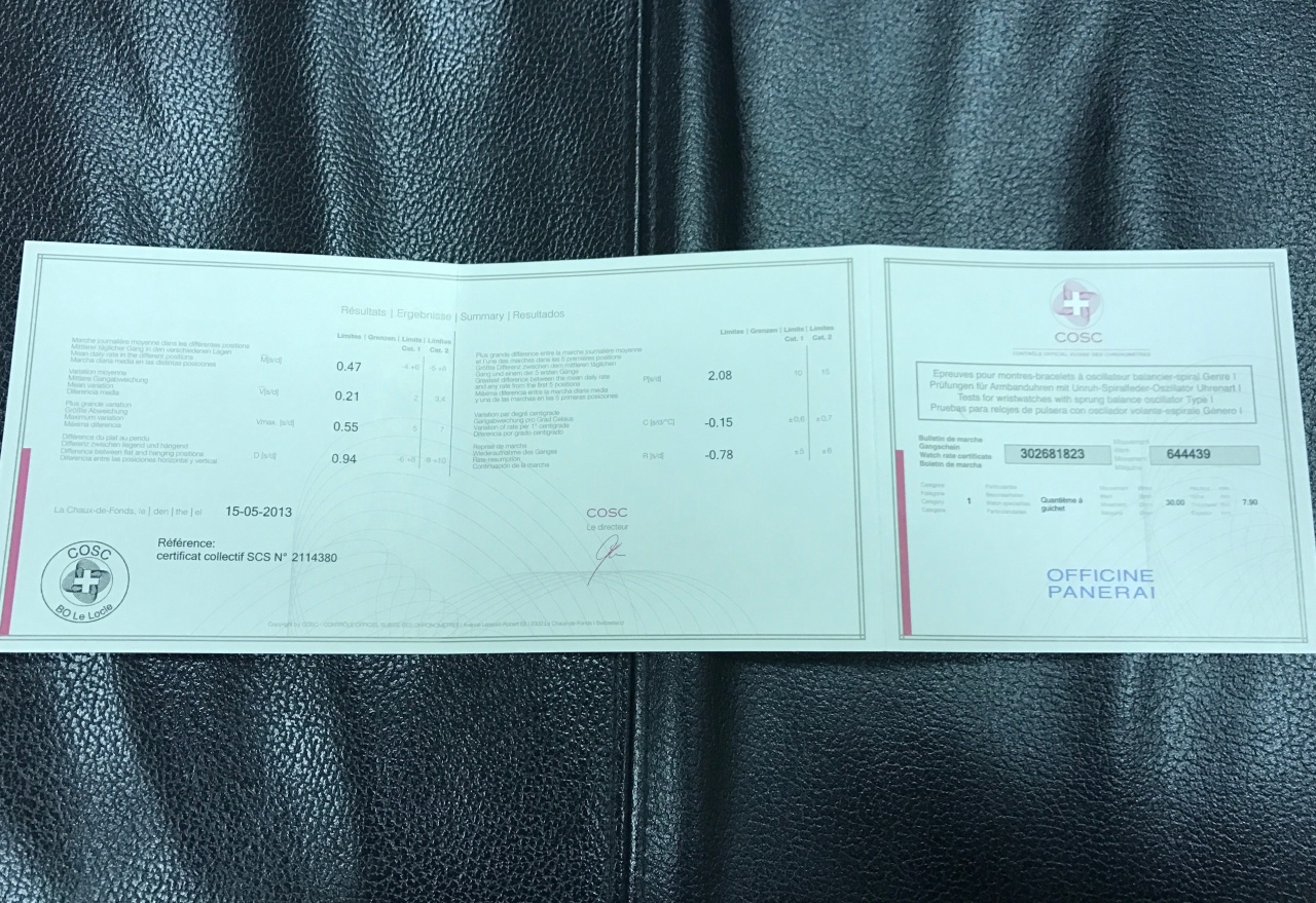 Механизм Автоматический механизм, эксклюзивный калибр Panerai OP III, 13¼ линии, 21 камень, ротор с фирменной отделкой PANERAI. Баланс из сплава Glucydur®, 28 800 полуколебаний/час. Противоударное устройство Incabloc®. Запас хода 42 часа. Узор Côtes de Genève на мостах. Проверен и сертифицирован C.O.S.C.