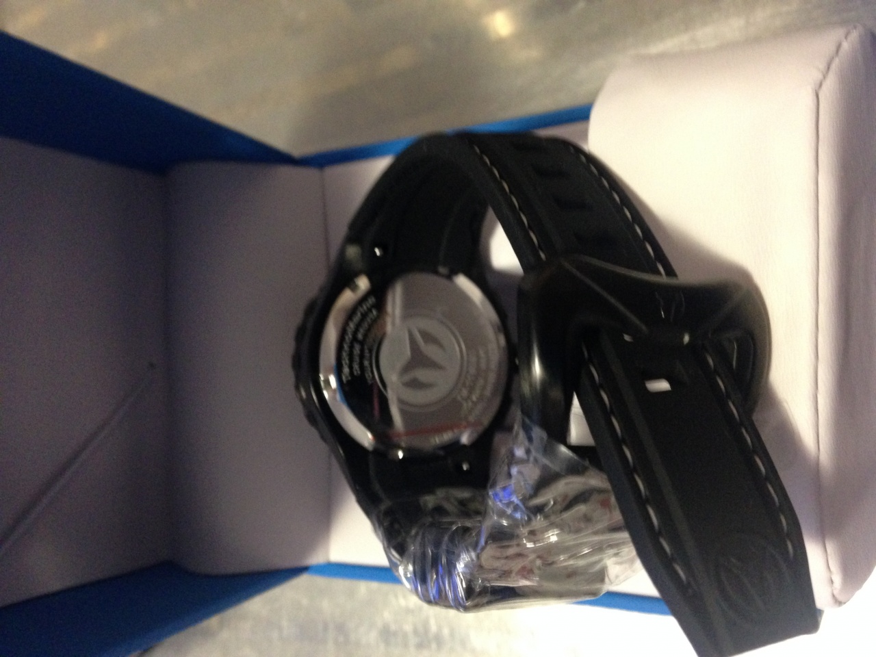Корпус из черной ионно-тонкой нержавеющей стали с черным силиконовым ремешком. Однонаправленная вращающаяся черная панель с ионным покрытием. Черный циферблат со светящимися серебряными тональными стрелками и указательными часовыми метками. Минутные маркеры вокруг внешнего края. Тип набора: аналоговый. Люминесцентные стрелки и маркеры. Отображение даты в положении «4 часа». Хронограф - отображение двух субпанелей: 60 секунд и 30 минут. День недели для вспомогательного набора в положении «9 часов».