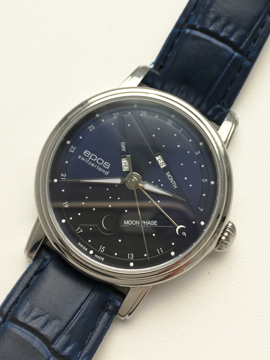 Продам не часто встречающиеся замечательные часы фирмы Epos. Механика с автоподзаводом, корпус 41мм. Синий циферблат в виде звездного неба, смотрится очень красиво. Из функций - можно установить число, день, месяц и фазы луны.