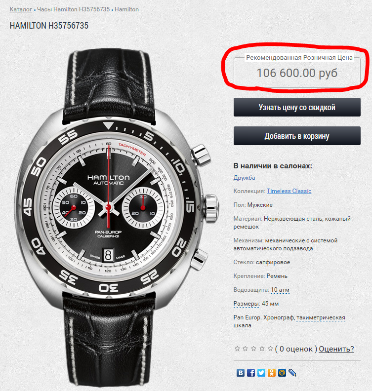 HAMILTON Pan Europ Auto Chrono H35756735 Черный цифер / Ремешок / d=45mm - Часовой форум Watch.ru