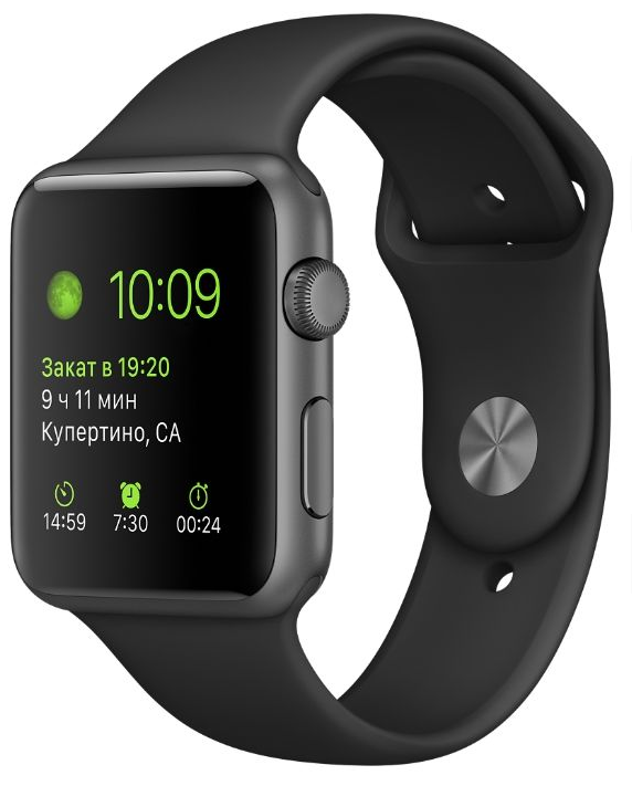 Естественно, первостепенная задача любых часов - показывать время и тут Apple Watch Sport справляется великолепно: при синхронизации с iPhone, максимальное отклонение от глобального стандартного времени составляет всего лишь 50 миллисекунд! Более того, Вы можете выбрать максимально соответствующий Вашим желаниям внешний облик часов от классических до анимированных или даже режима фото-альбома, когда со временем будет меняться фоновая фотография! С помощью различных приложений и датчиков, Вы сможете следить за своей физической активностью и распланировать распорядок дня и физических тренировок. Конечно же, никуда не делась возможность поставить будильник и многое другое.