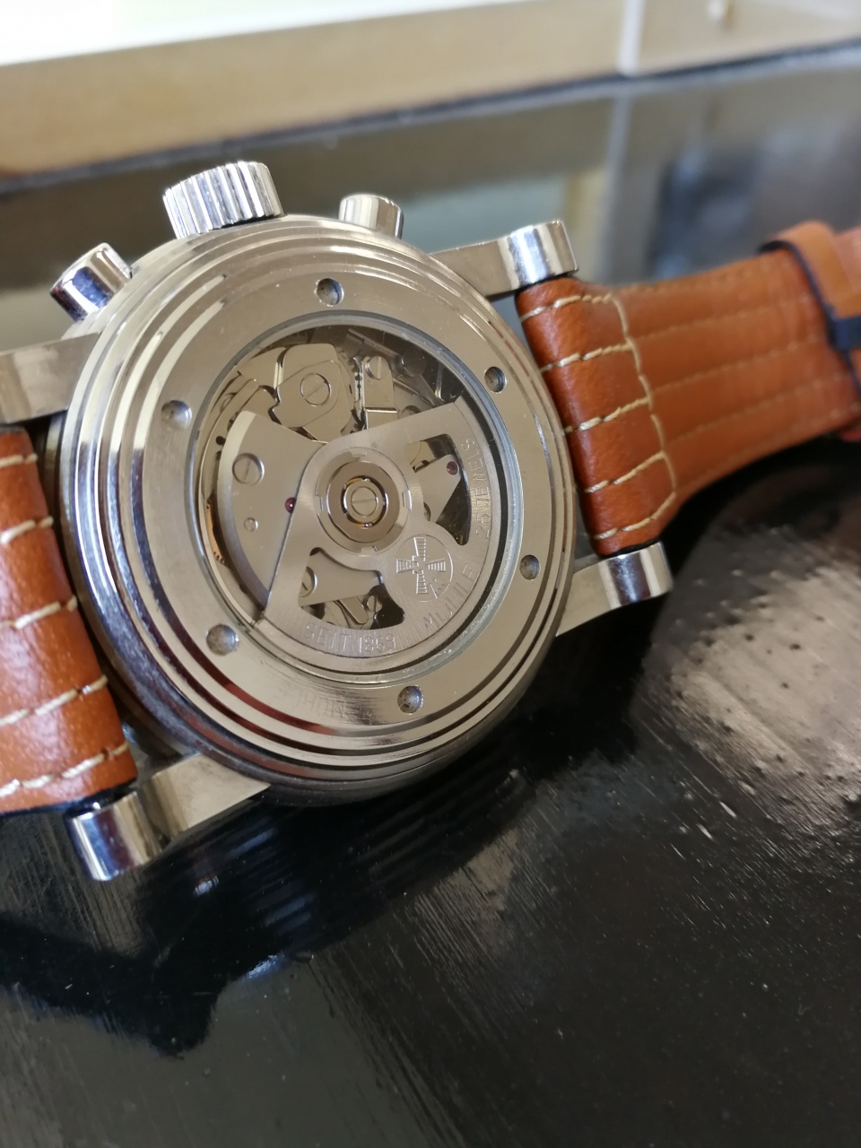 Хронограф на базе Valjoux 7750. Механизм обслужен в конце прошлого года.