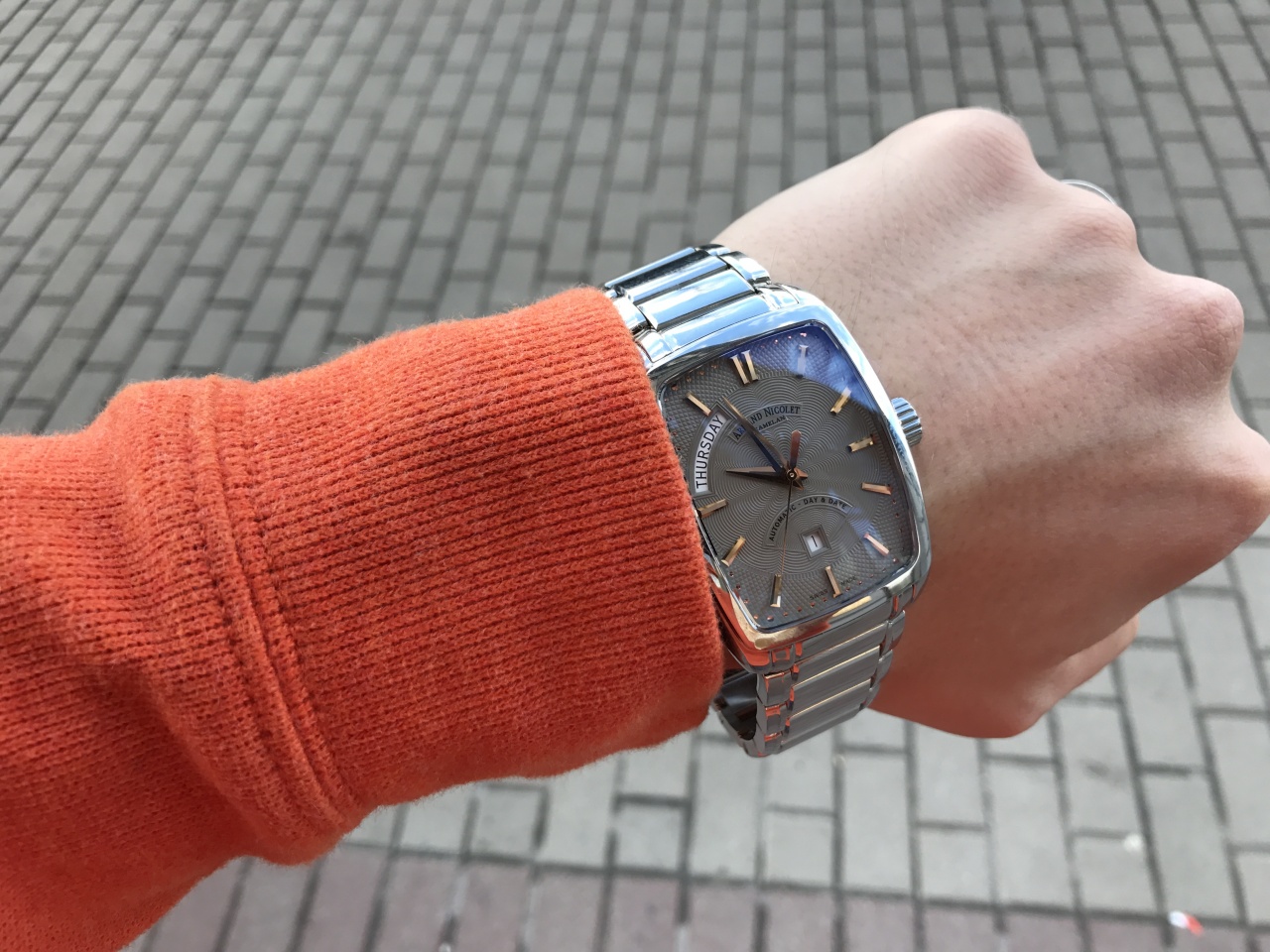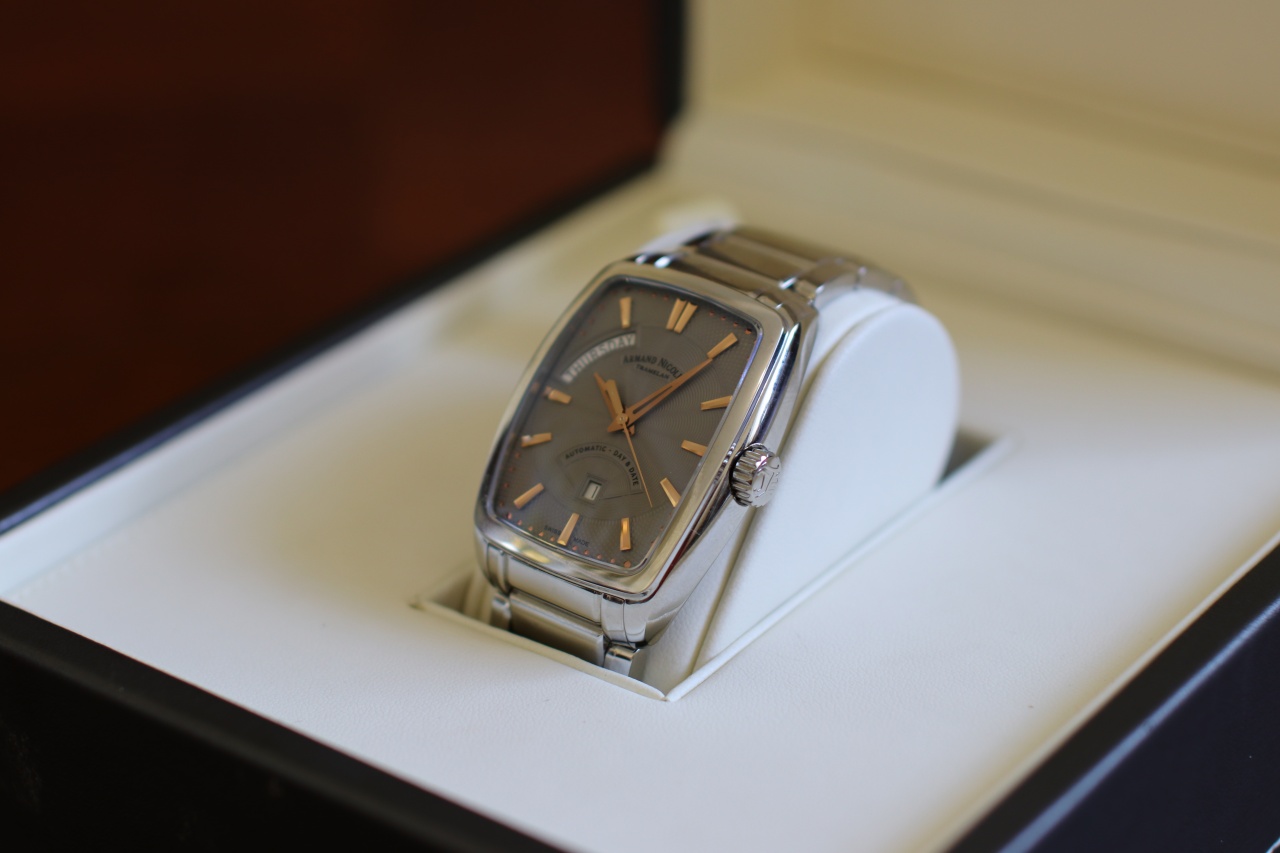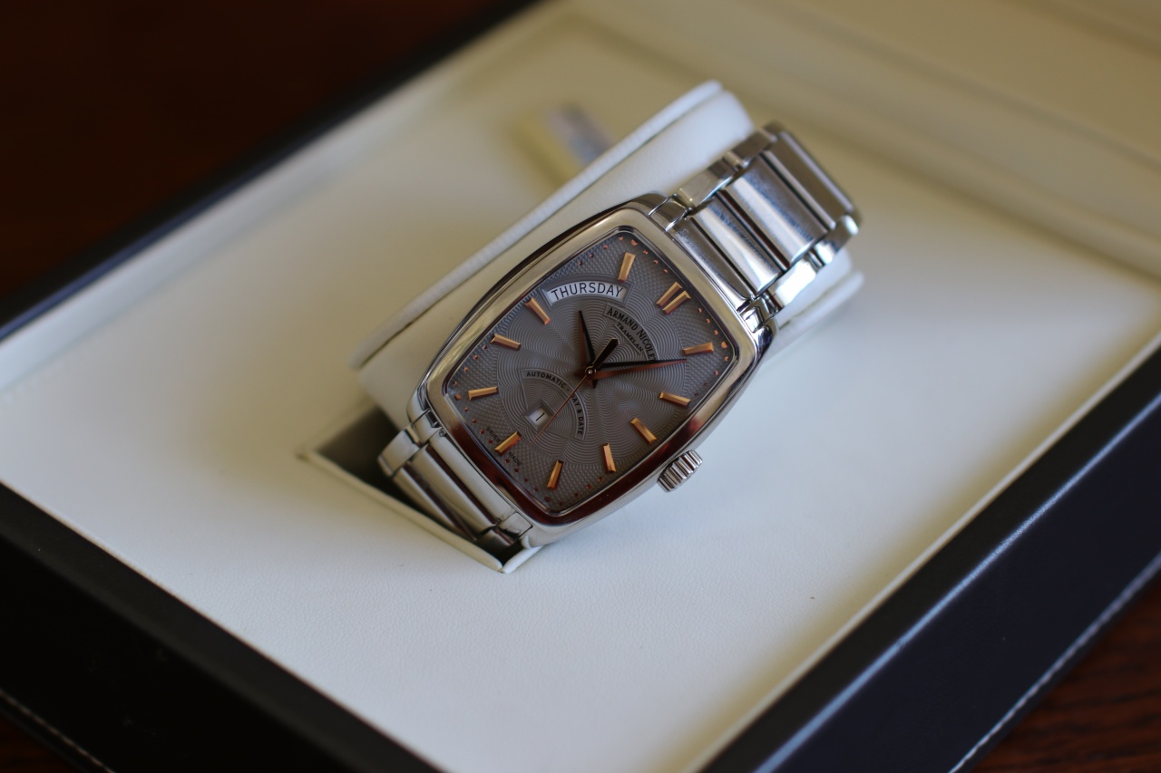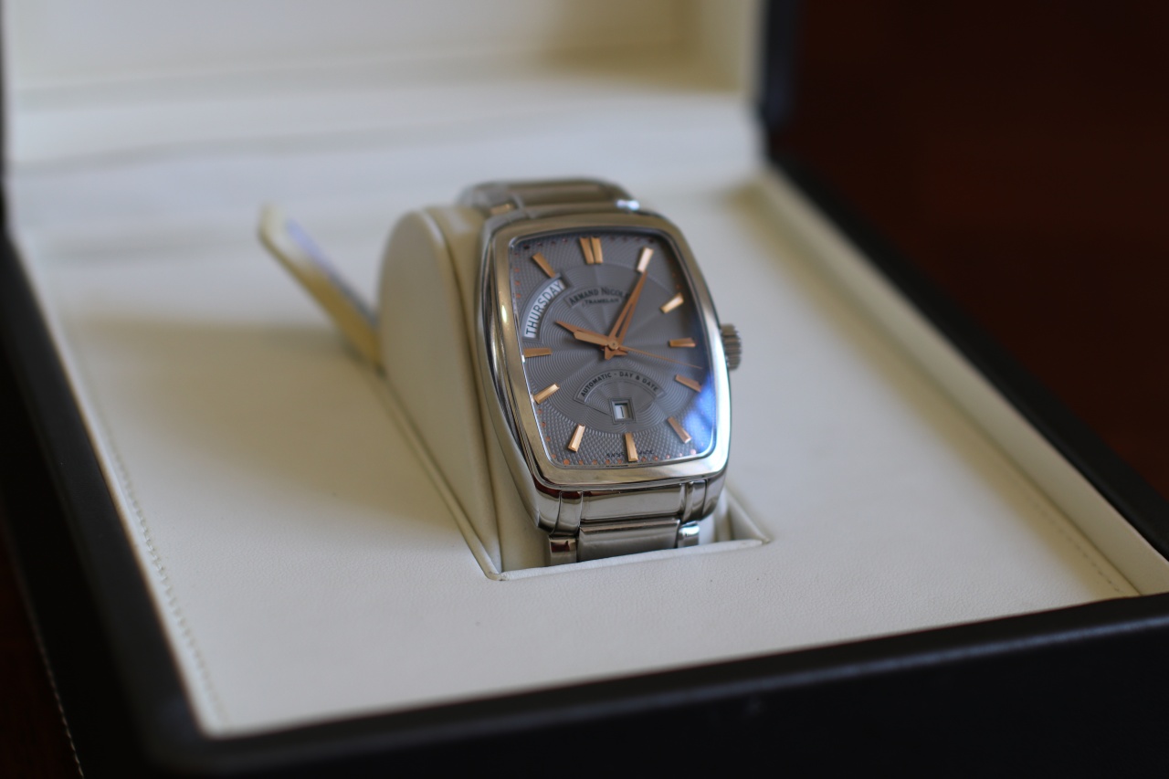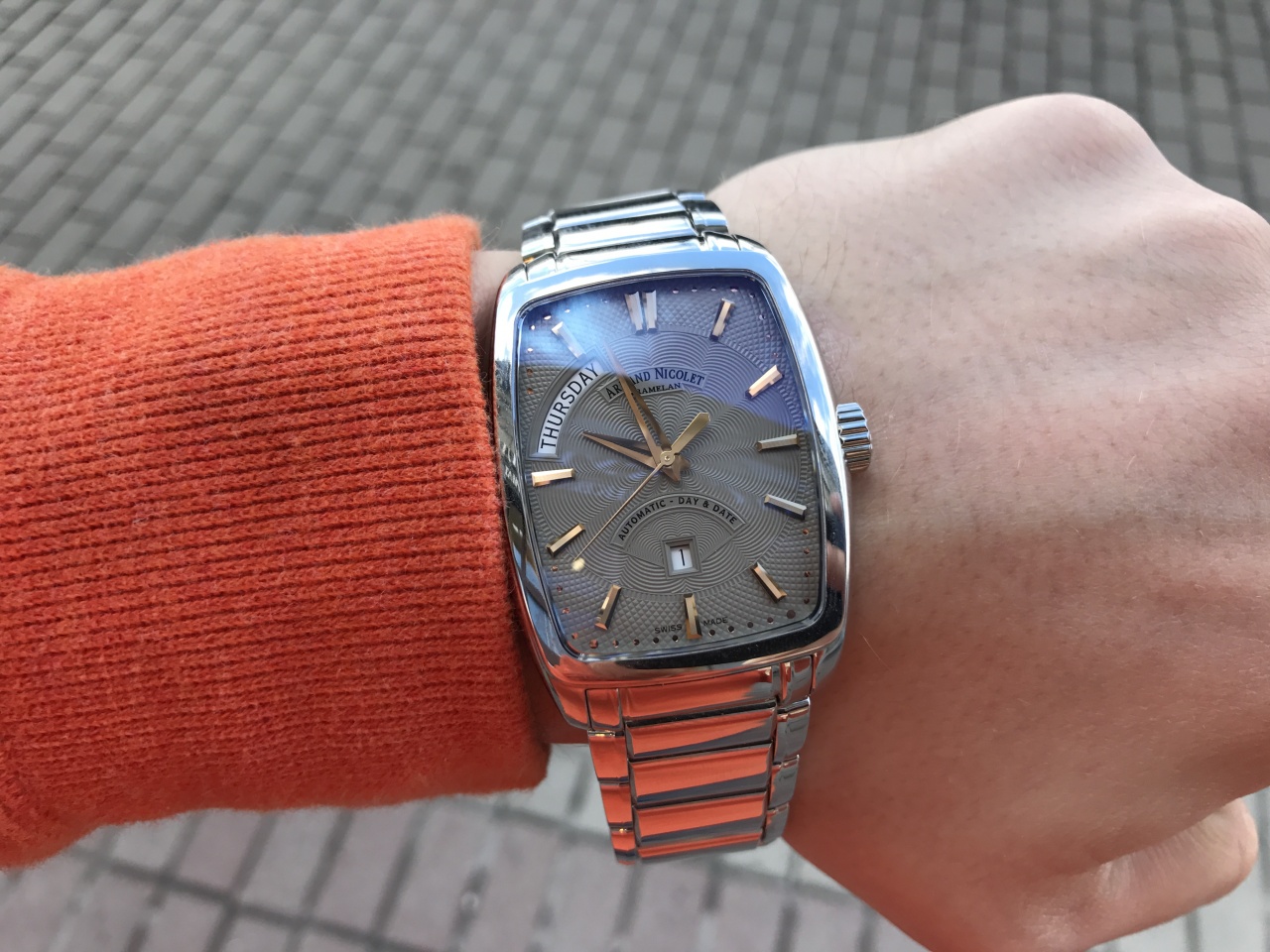 Огроменная но жутко красивая бочка от Armand Nicolet! Отличные часы на каждый день с очень удобным браслетом! Часы новые но карточка утеряна!